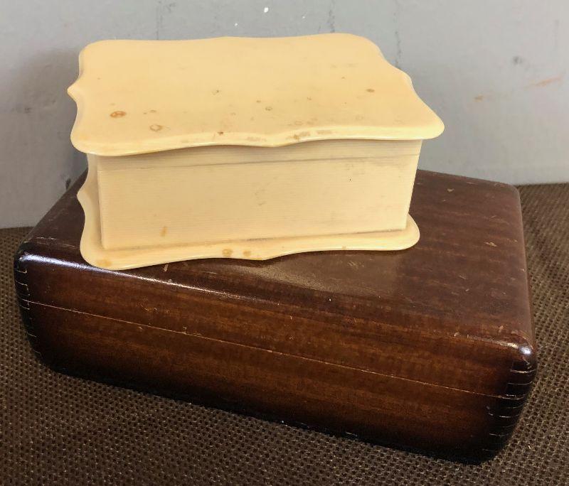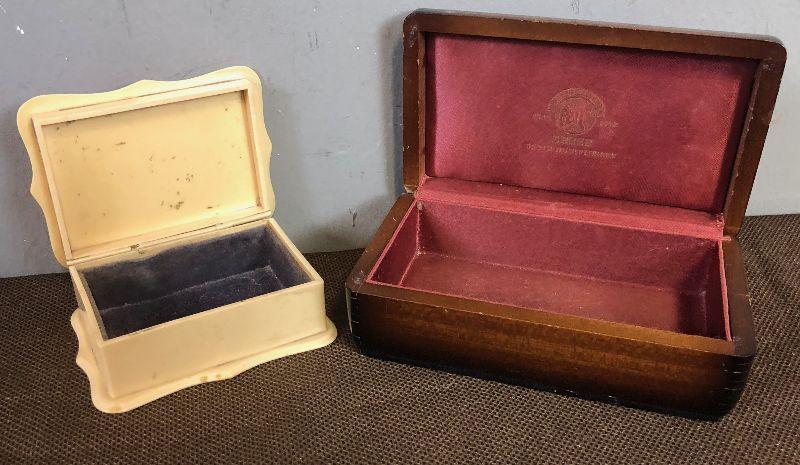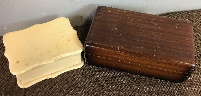 Lot #36 2 vintage jewelry boxes -wood & Celluloid