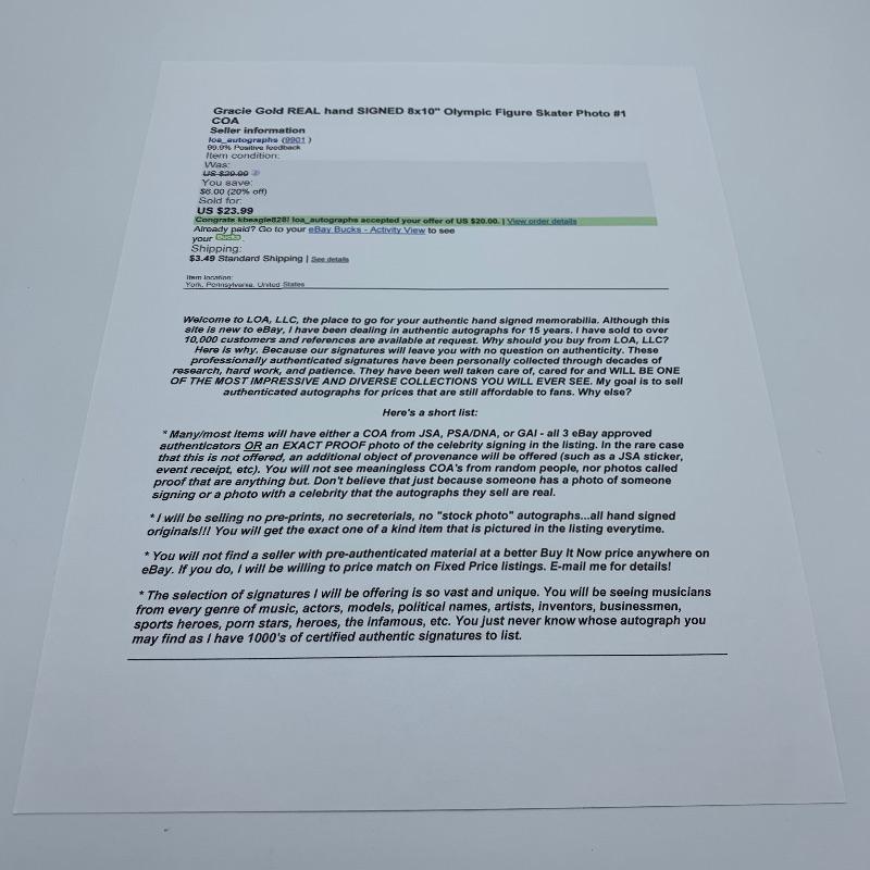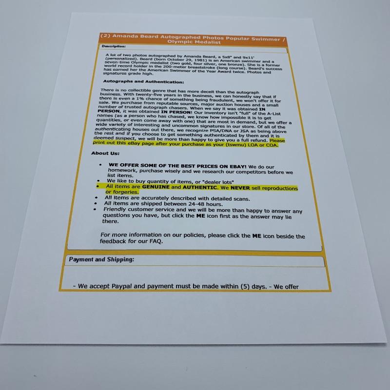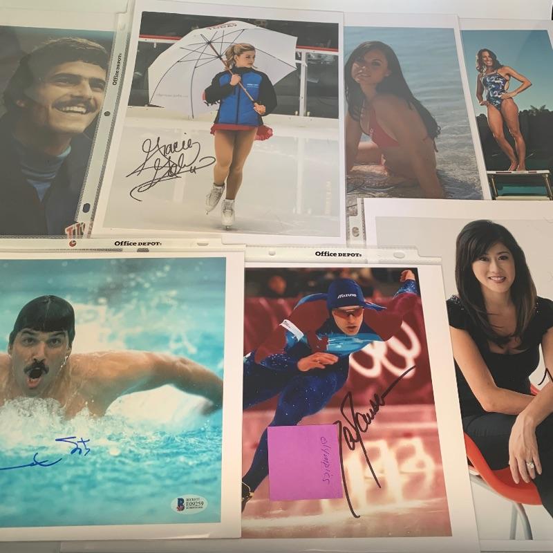 Autographs from some athletes you'll recognize from The Olympics in swimming and skating. These include figure skaters - Kristi Yamaguchi and Gracie Gold, Speed Skater - Dan Jensen, Swimmers - Amanda Beard (3 photos-only beach photo has COA), Mark Spitz (2 photos), and Janet Evans. All have COAs expect what is mentioned above.