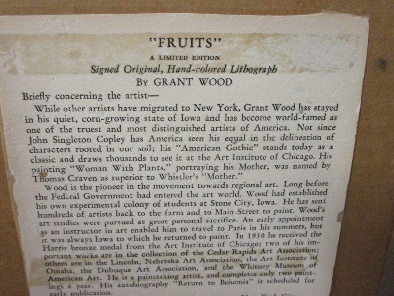 Lot 36 - Hand-Colored Lithograph "Fruits" Grant Wood