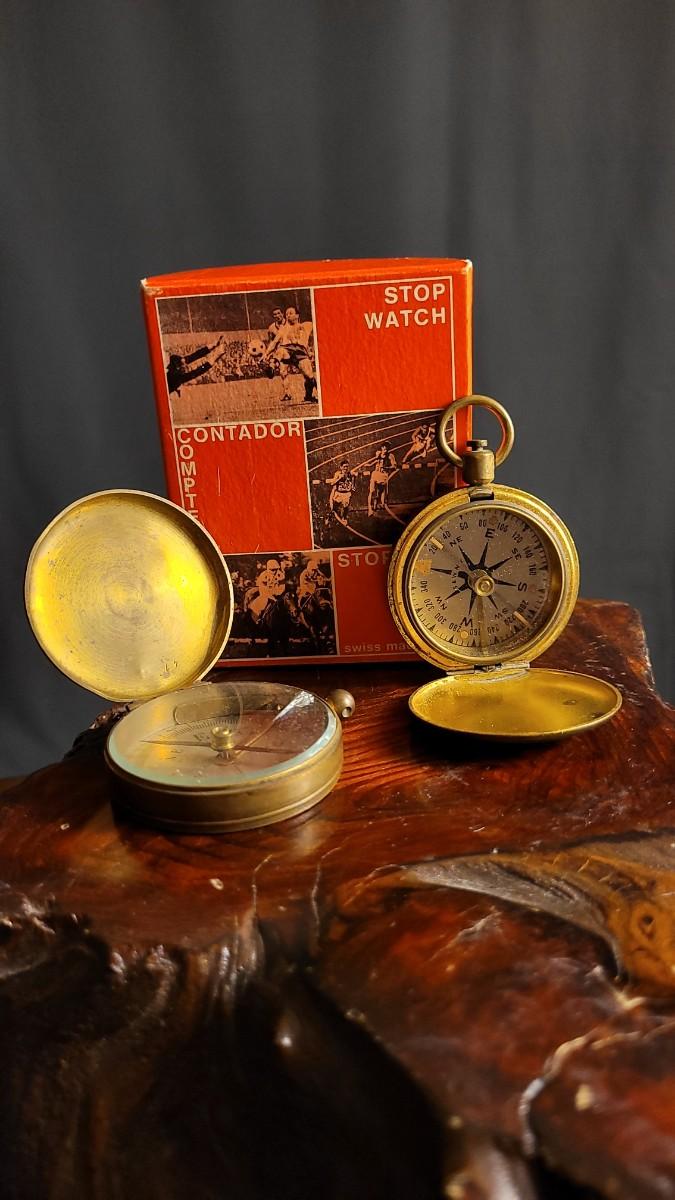 This lot features a wonderful collection of 2 Antique/Vintage compasses- one is from the United States the other is Made in France. The Stopwatch is Is a Swiss made BARCO-STOP 7 jewel Edition that has not been tested. It does come with the original Box.