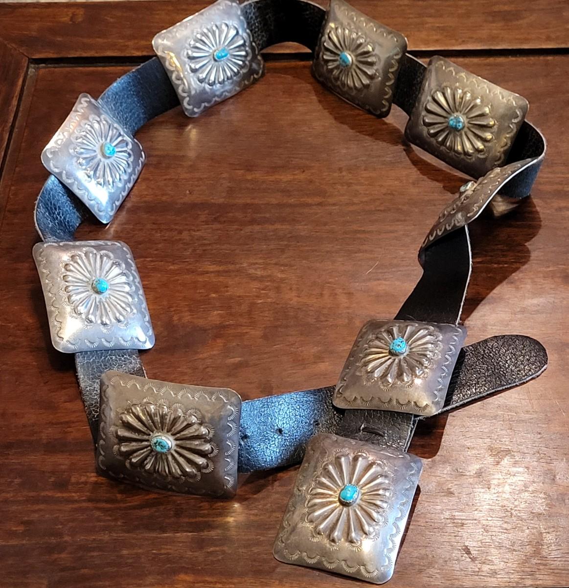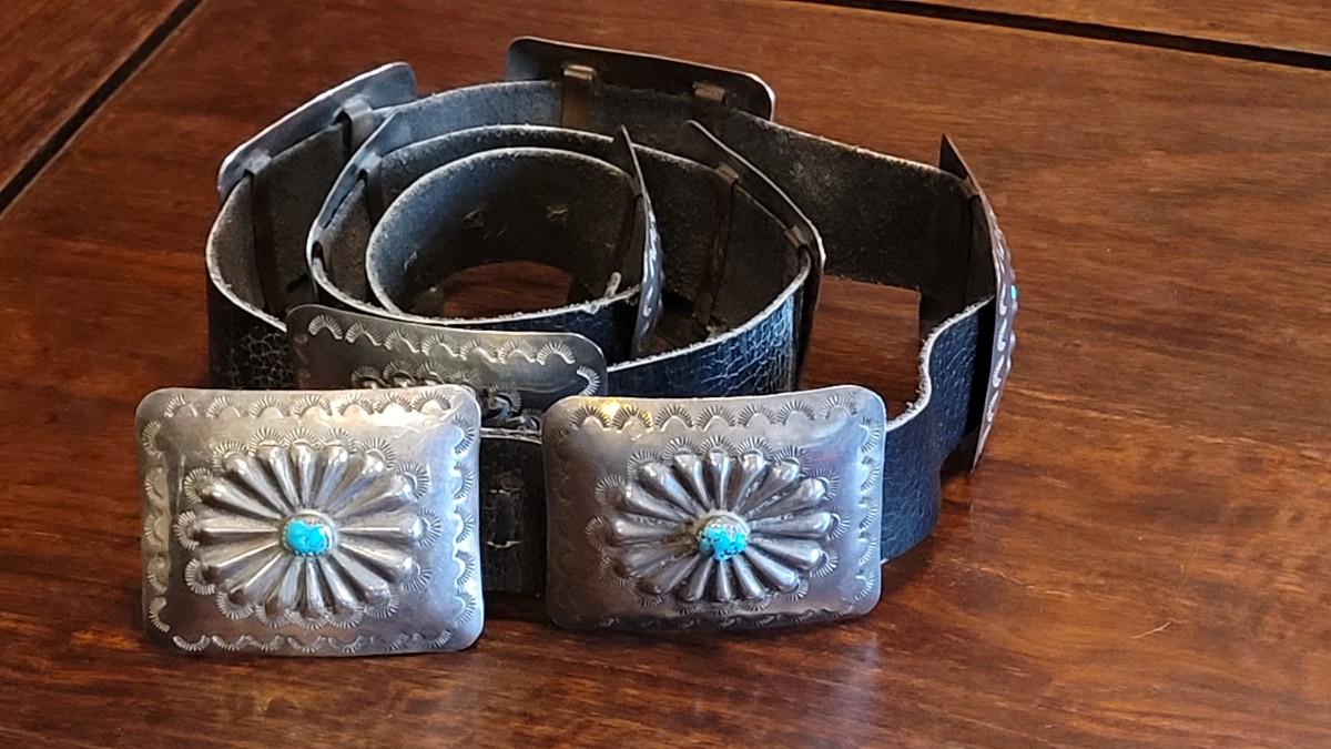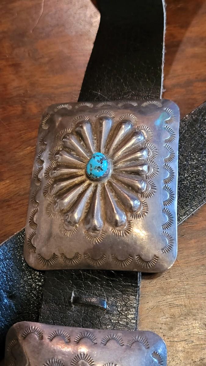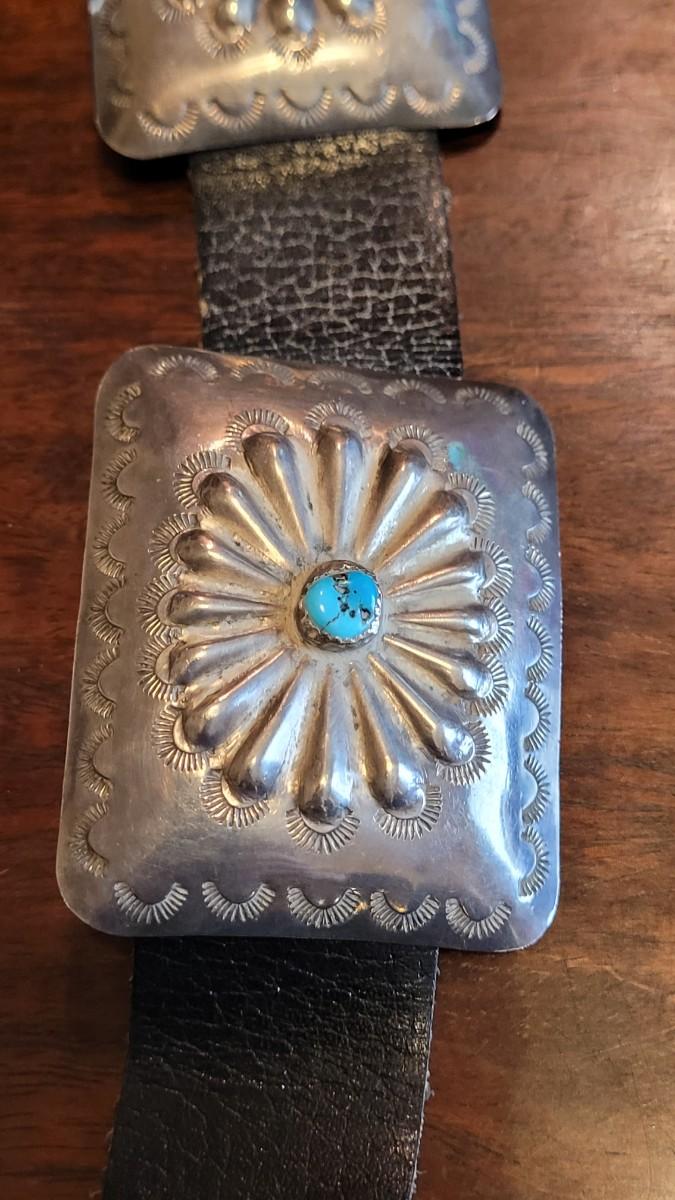 Lot 36: Old Pawn Navajo Sterling & Turquoise Concho Belt