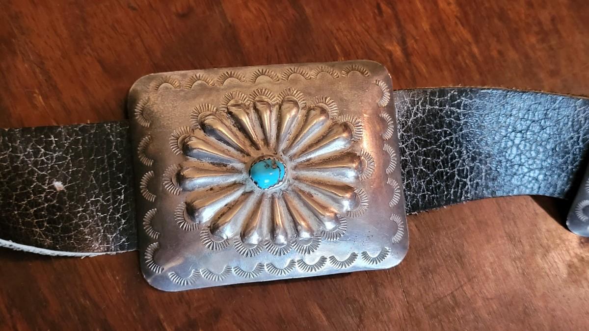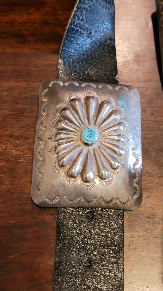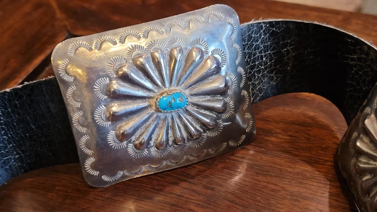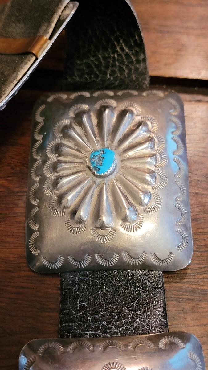 Lot 36: Old Pawn Navajo Sterling & Turquoise Concho Belt