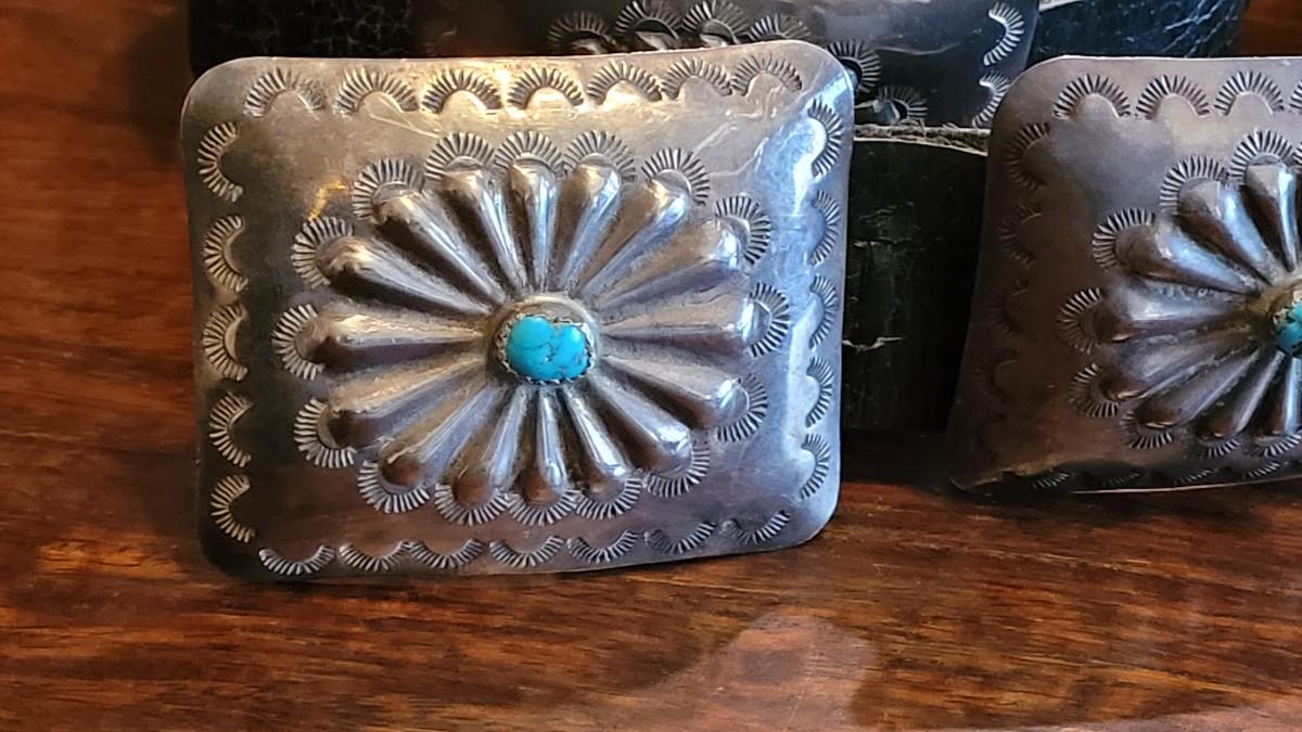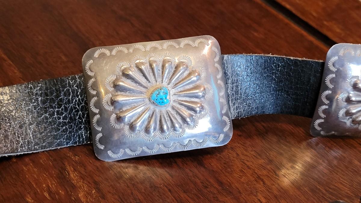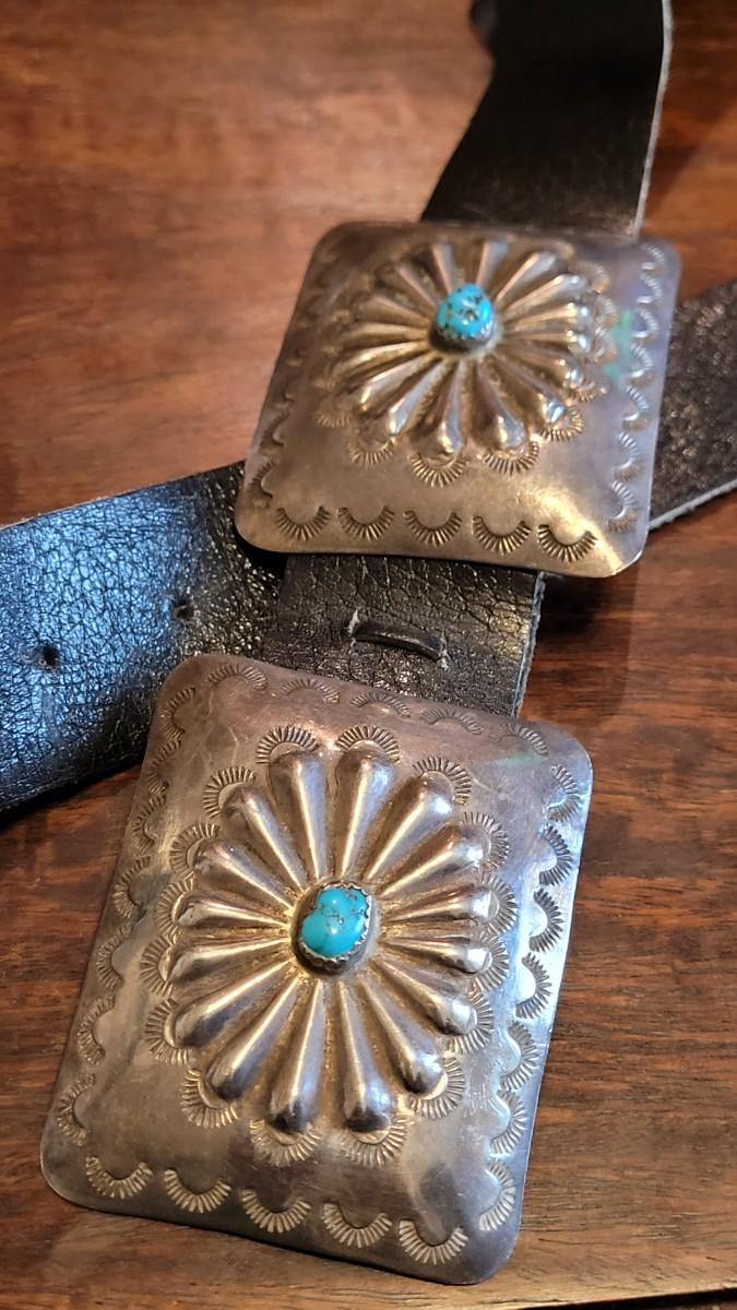 Backside of Conchos have copper tabs that belt feeds through.