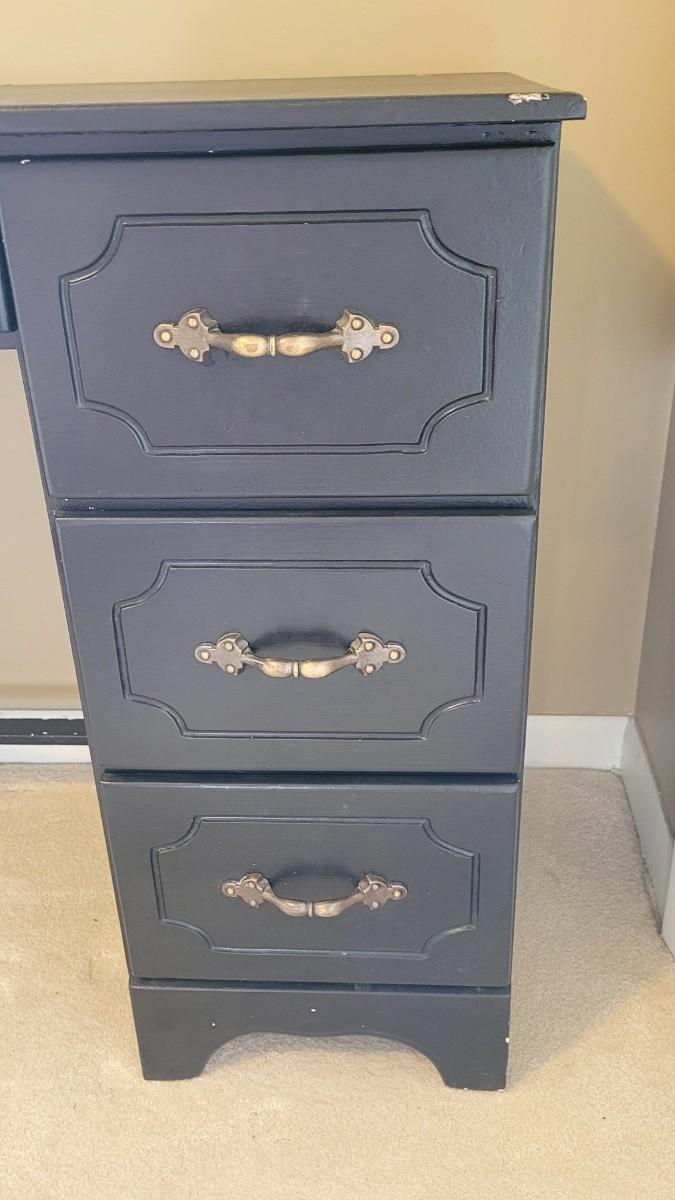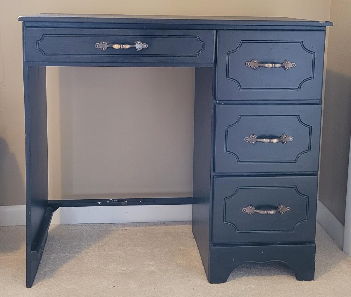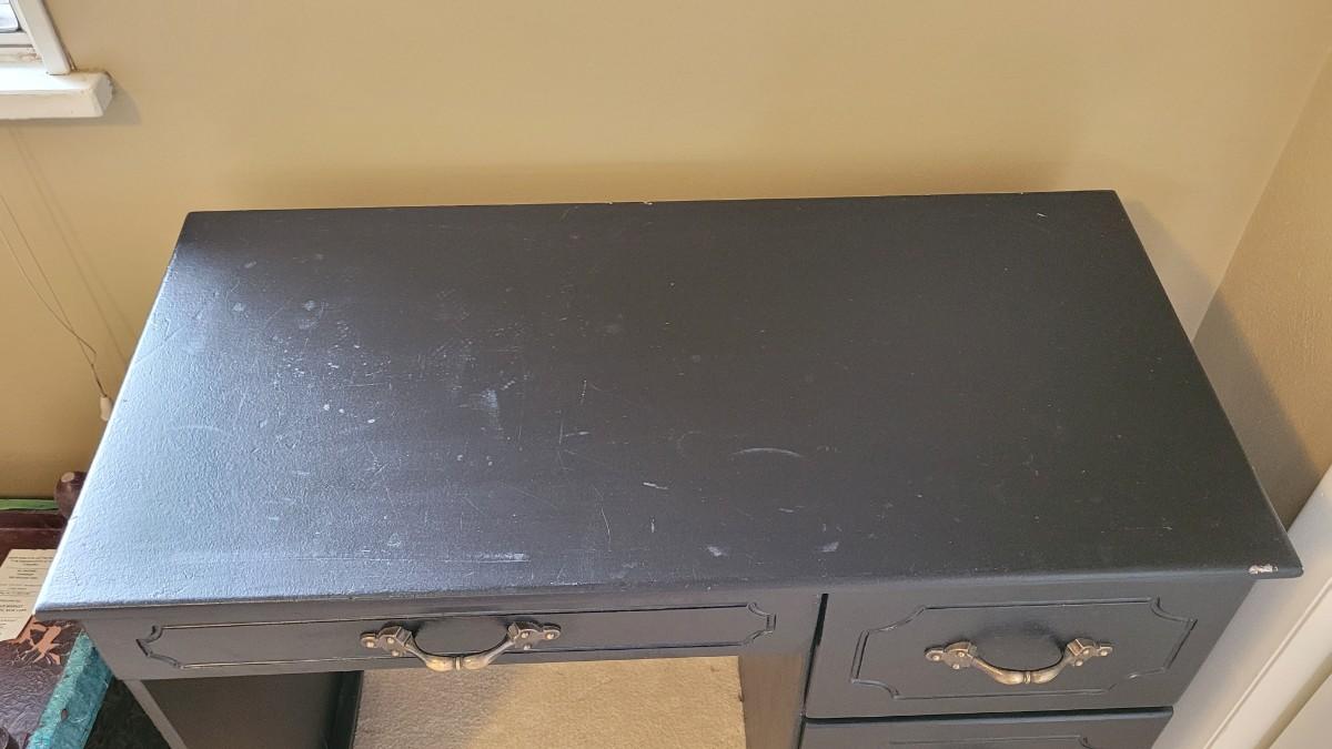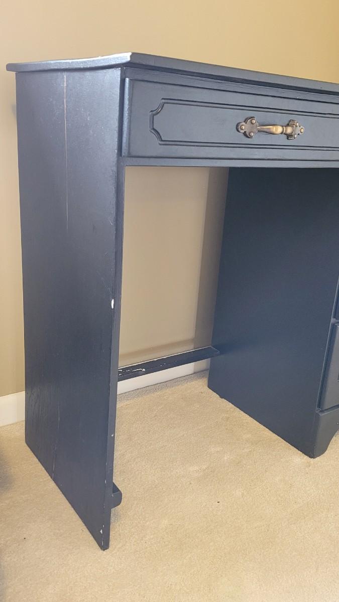 Nice size, Wood desk that will fit into many spaces and decors. It has some paint scuffs but otherwise in nice condition.
