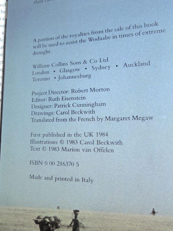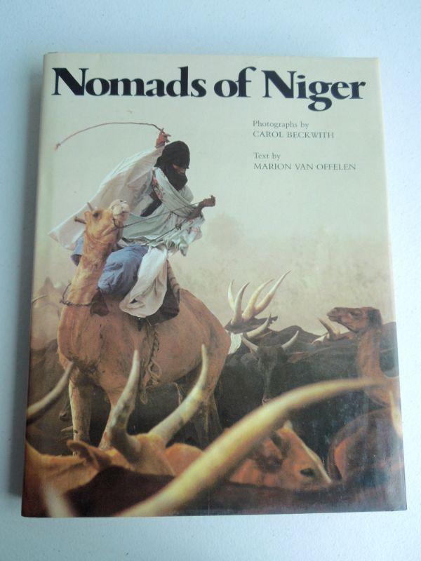 18 books total. Includes a 1983 copy of "Nomads of Niger" by Marion Van Offelen. ISBN: 0002163705. This book is like a work of art, and is finely bound in Italy: there is an artistic inlay on the cover; the chapters are printed on a very grainy, construction-paper (accompanied by line-drawings and maps), while 144 high quality color images are dispersed between the chapters on a contrasting, glossy paper. This book details the Wodaabe tribe of Niger in sub-Saharan Africa.