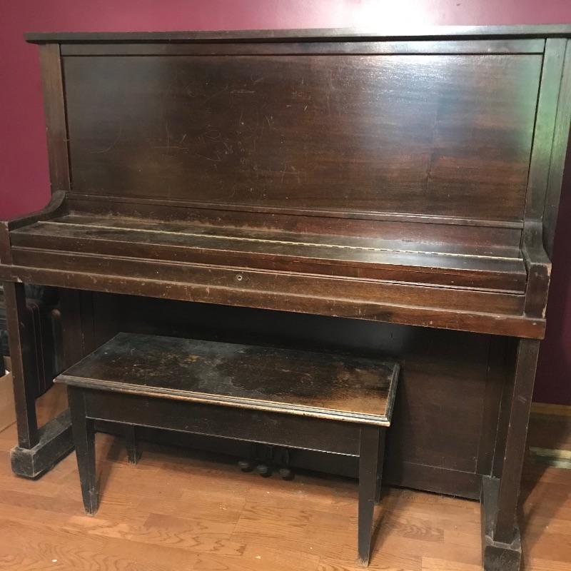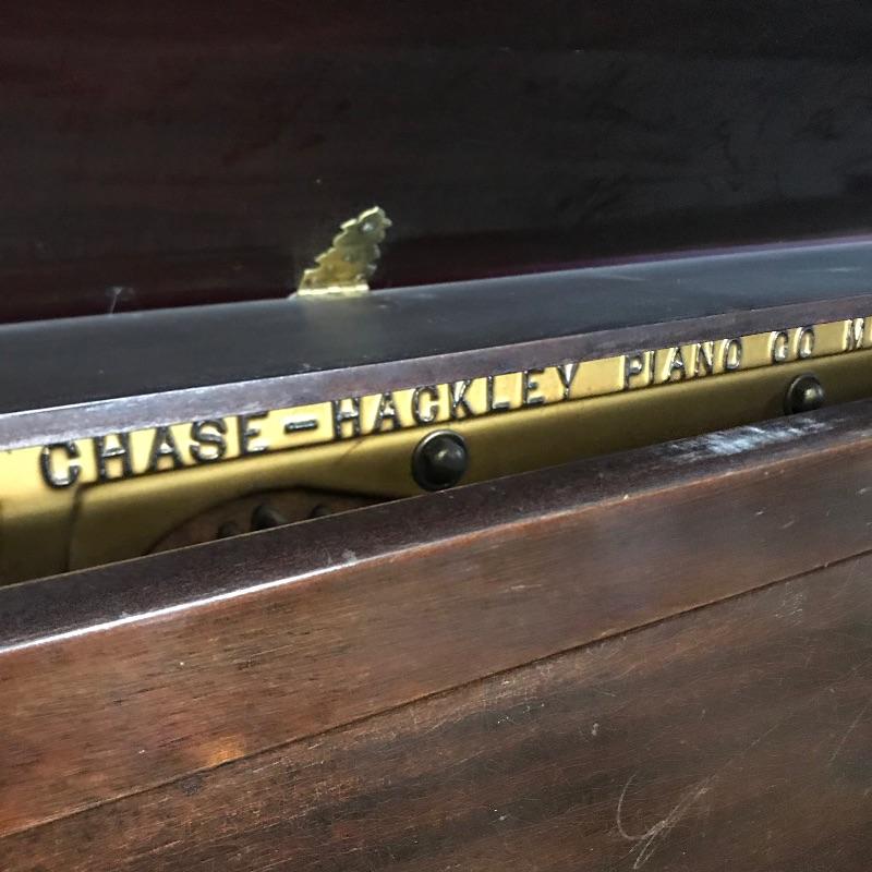 Chase-Hackley built in Muskegon, Michigan. Shows wear but none of the keys stick. Comes with music books and books about musicians and song writing. Approx. 63” x 27” x 54”. Model number appears to be 94790, see photo. The piano is in fair condition. Local pickup only. Please note that this piece is very heavy and will take several people to move. No large staircase to navigate but there are multiple steps. Please bring your own movers to pickup as Sterling Transitions employees are not available for moving. We also have moving people and piano specialists if you need help, please just call or email us to get contact information.