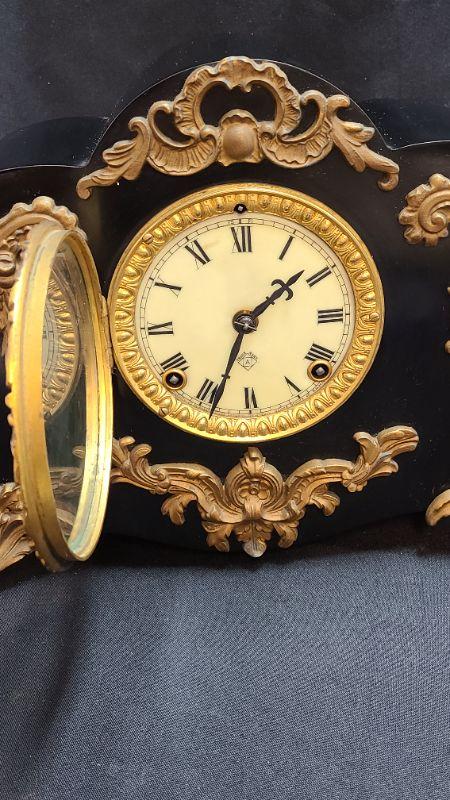 Ansonia Mantle Clock. Untested. Beautiful, heavy, ornate. Please see all pictures for condition of the items listed and what is included in the lot. Pictures will also show any measurements if taken and is the best representation of the items. Thank you for looking and have fun bidding! We appreciate Treasure Hunters!