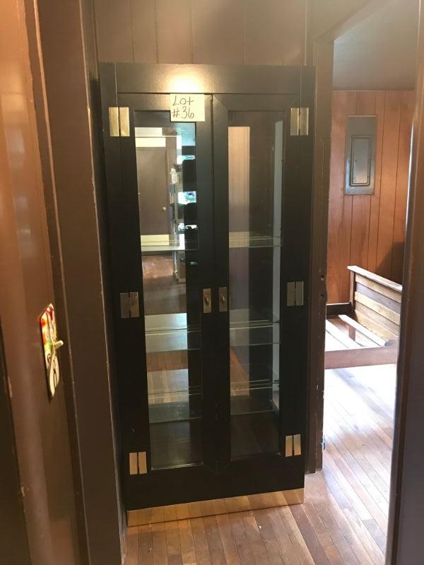 Lot #36 Black and Gold Glass Curio Cabinet w/ Shelves