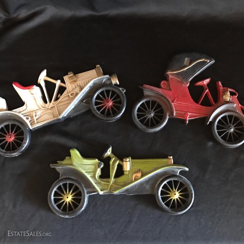 Three Metal Car Wall Plaques largest piece is 9"x3"