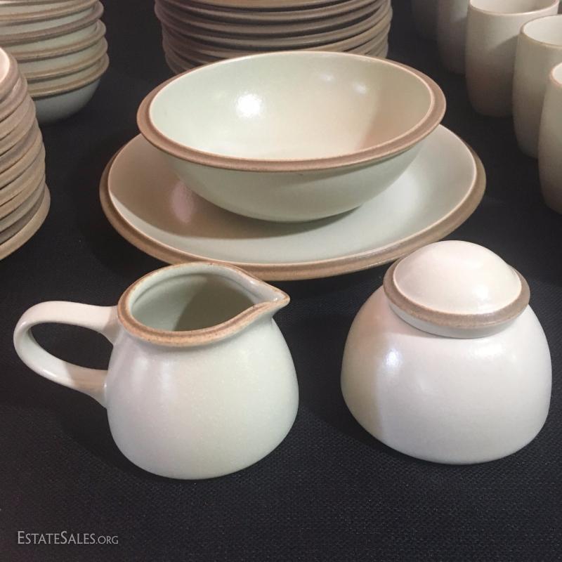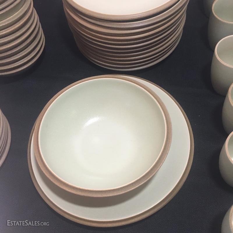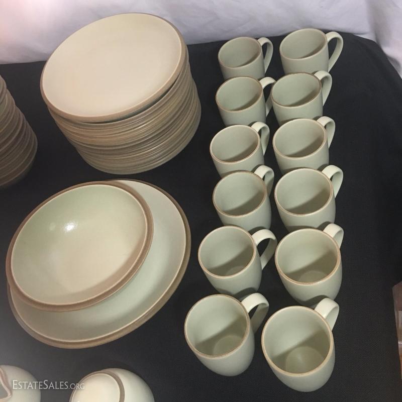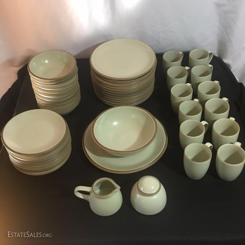 47 pc Dansk Dish set like new. Heavy ceramic light sage green color. See pic.