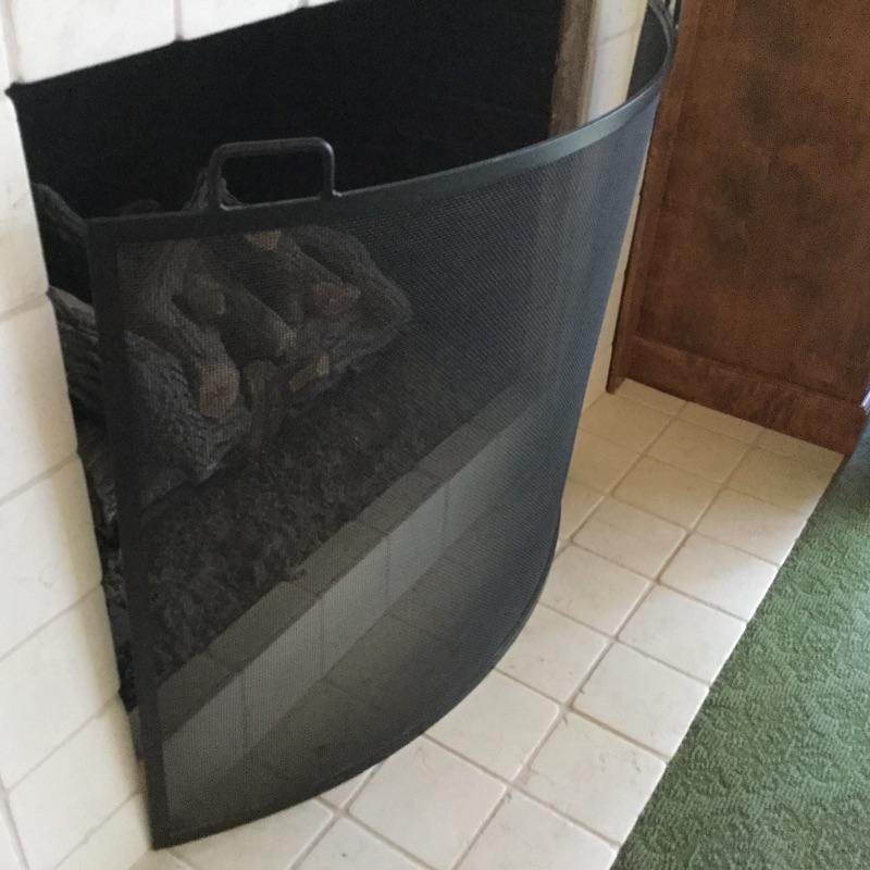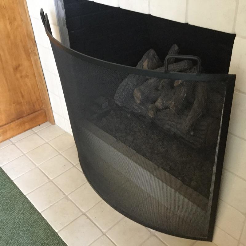Unique, sleek design Black Metal Fire Screen in like-new condition. One piece and local pick up only.