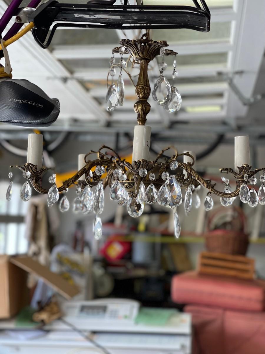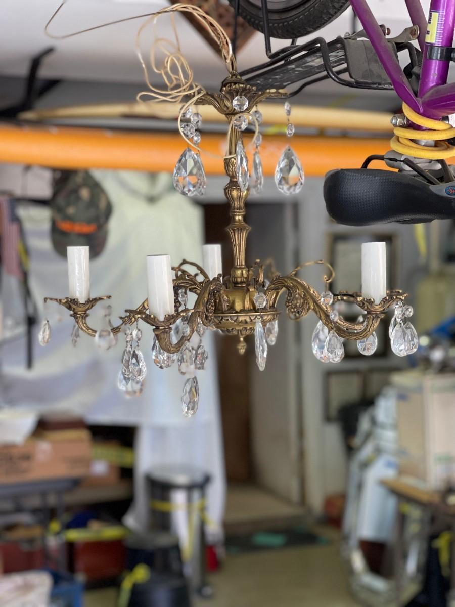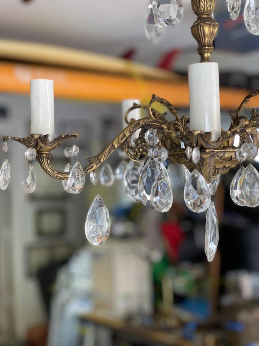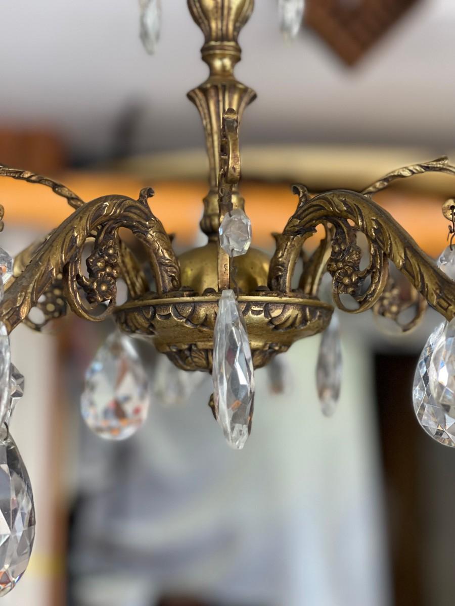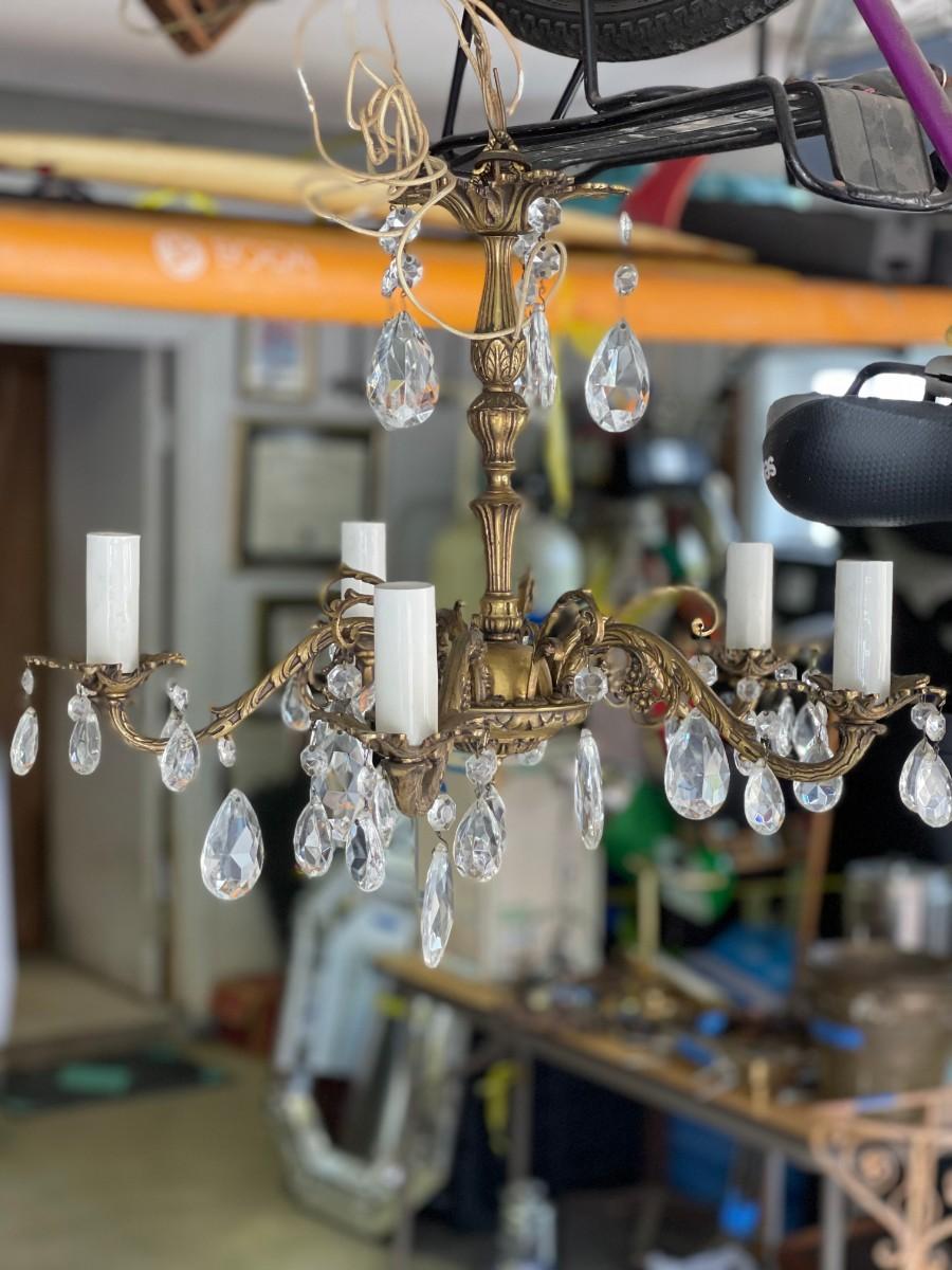 Lot 36 - Gilded 5 branch chandelier with crystals