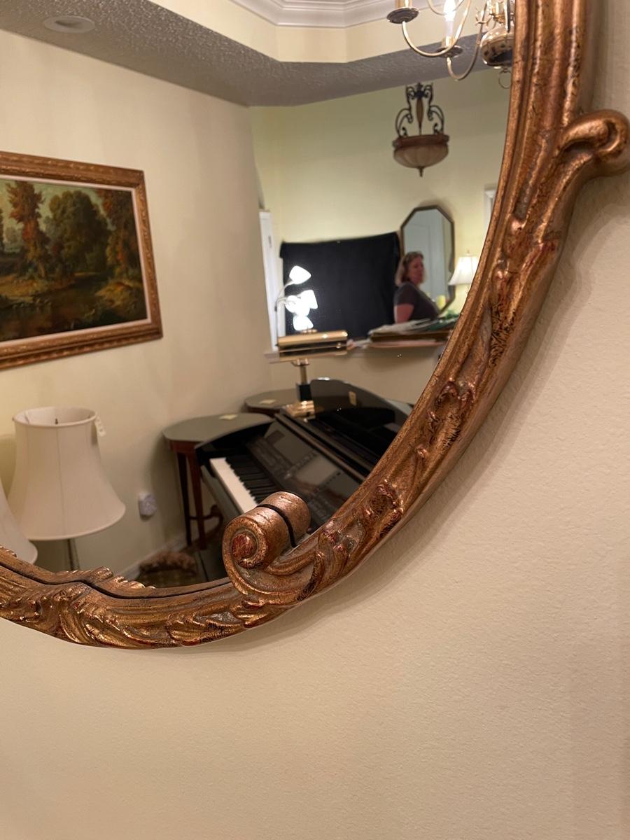 Lot 36  Gold Wall Mirror with Fleur de lis Sconces