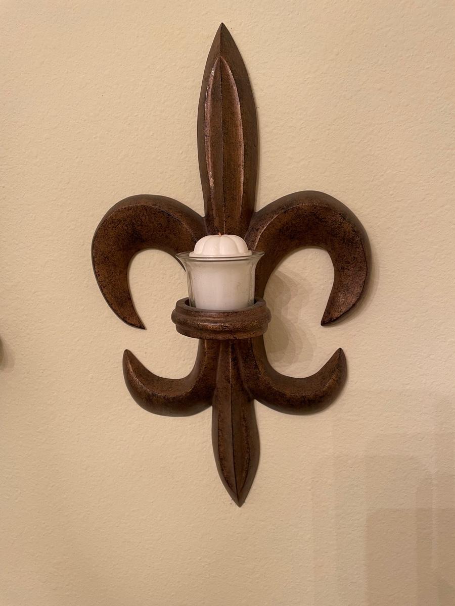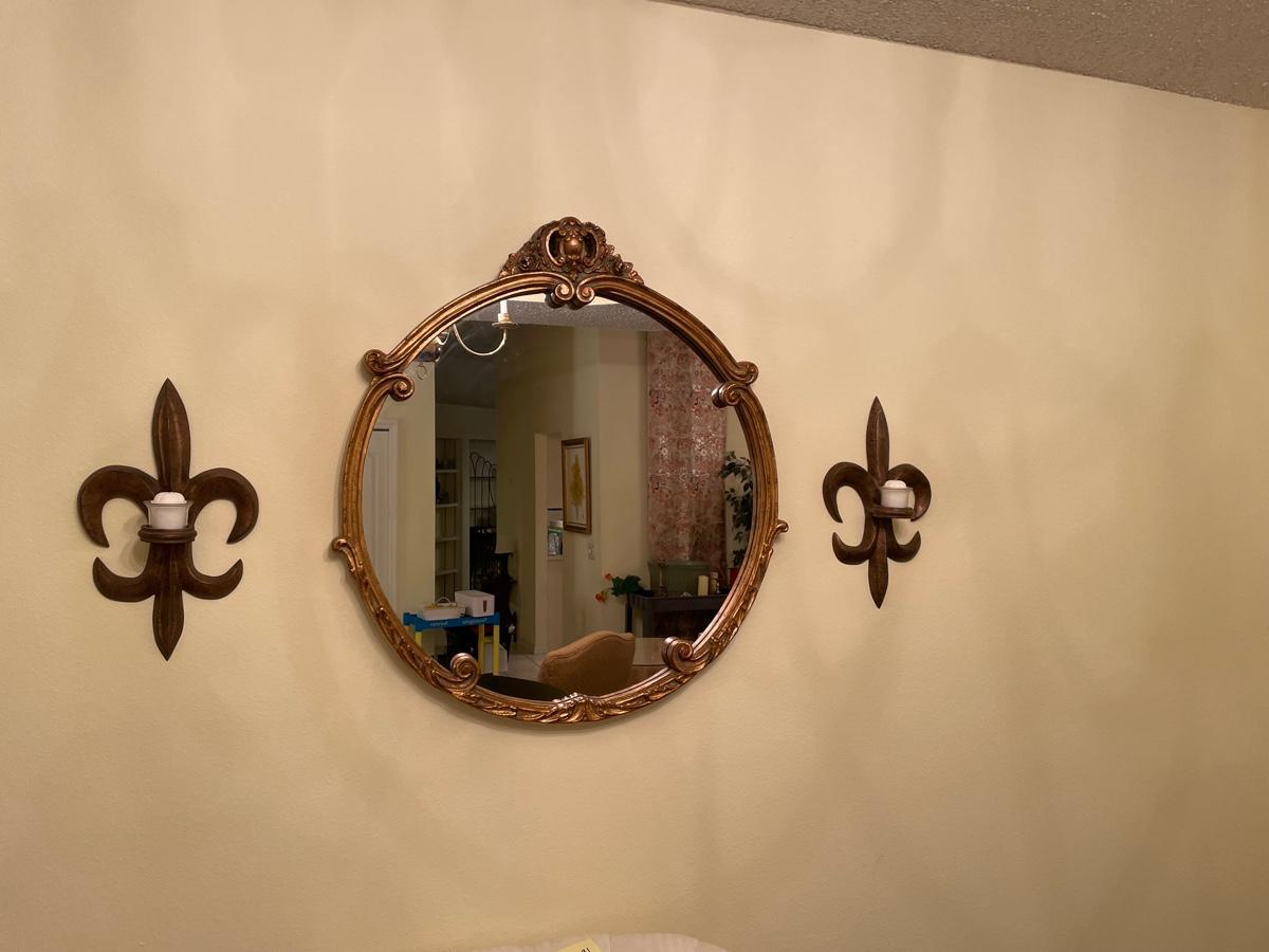 Lot 36 Gold Wall Mirror with Fleur de lis Sconces