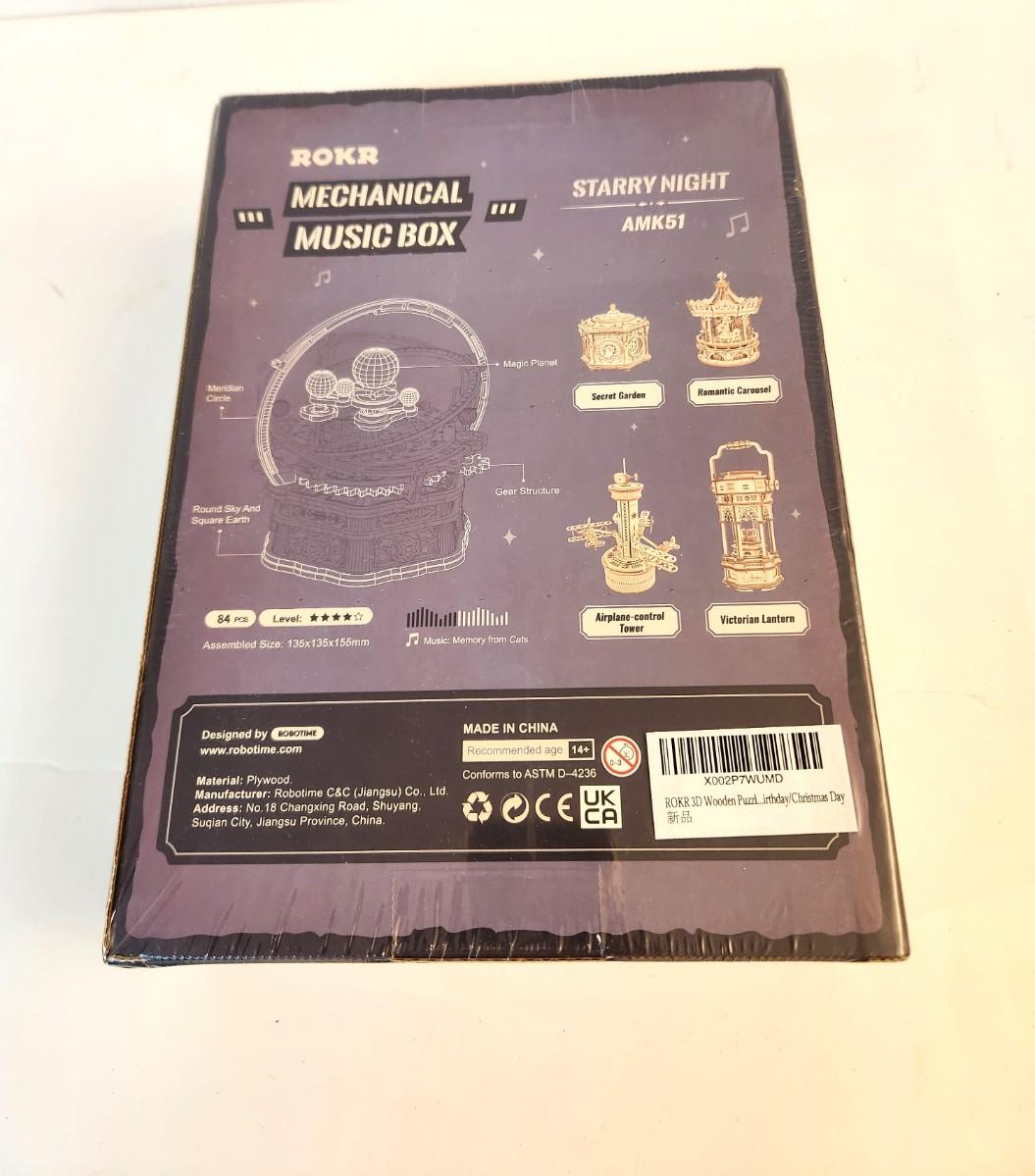 New in box - still shrink wrapped - ROKR Starry Night Mechanical Music Box - plays "Memory" from Cats. A fun project.