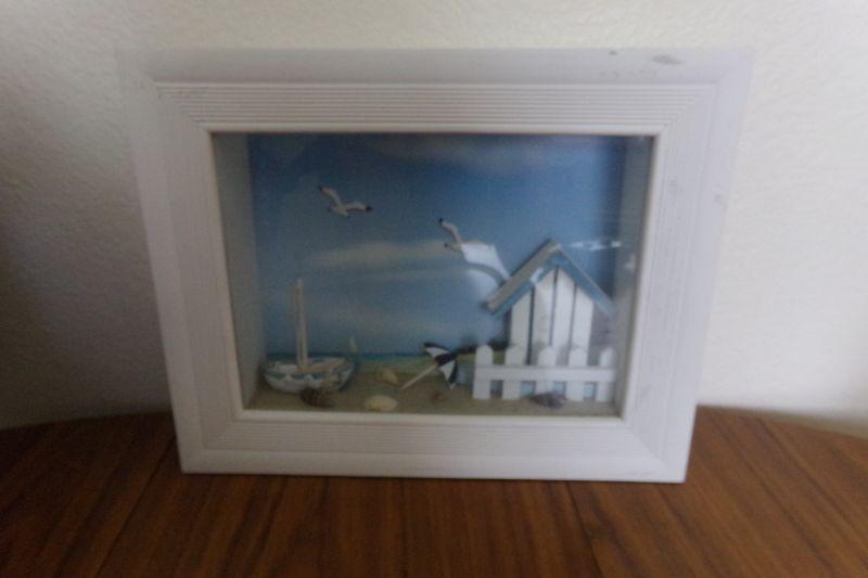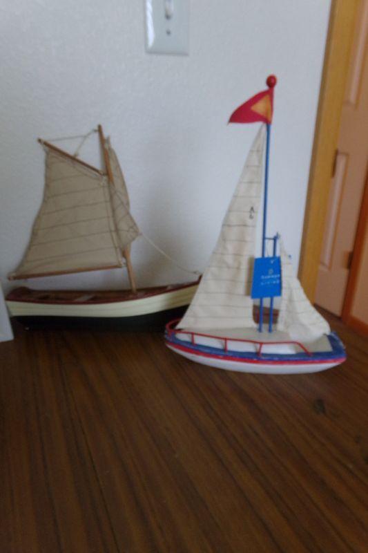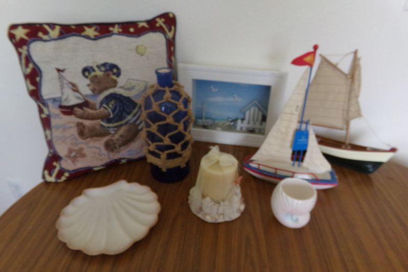 SAILBOATS, SHADOW BOX, CANDLE, COBALT BLUE BOTTLE, PILLOW, SEASHELL DISH