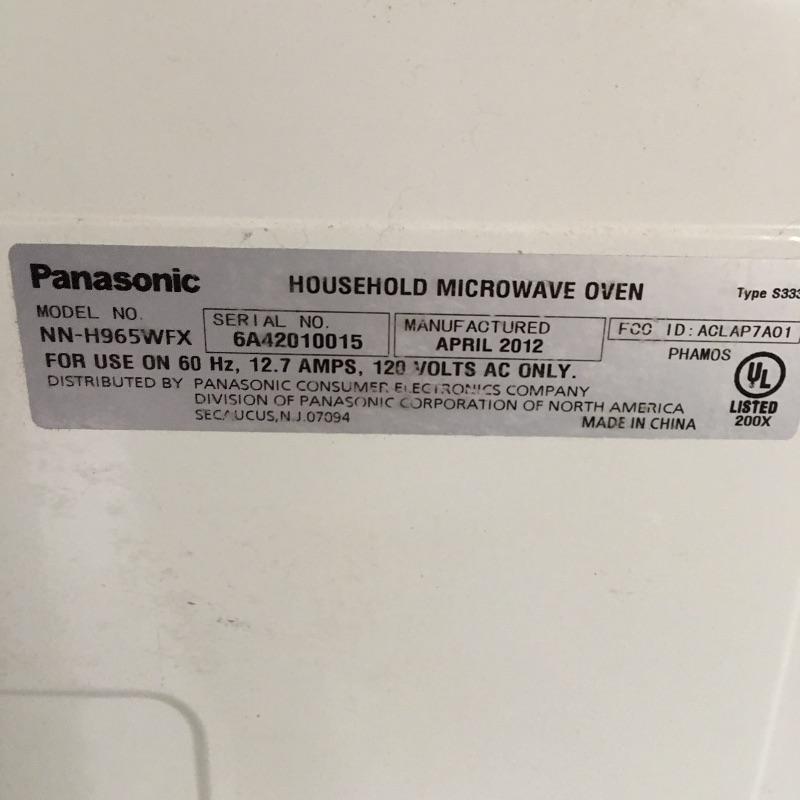 Panasonic countertop microwave oven model # NN-H965WF. 1250 watts with 2.2 cu. ft capacity.