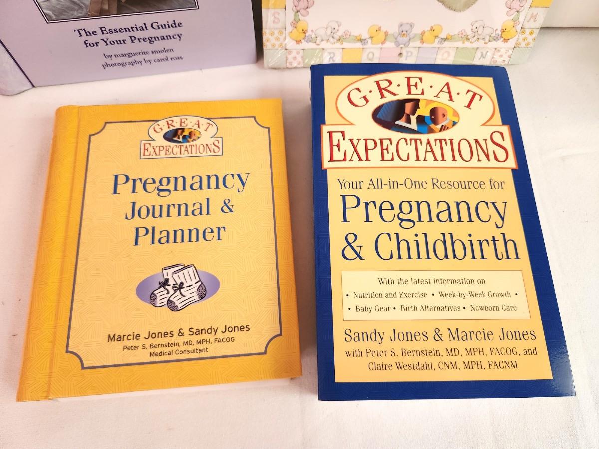 Great Expectant mother gift - you get all you see here - all items are brand new. Great Expectations: Pregnancy and Childbirth book - Pregnancy Journal and planner - Baby's Second Year (Baby book), and Nine Months and Counting: the ultimate month by month planner.