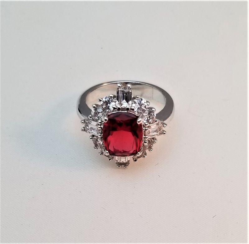 Lovely costume ring that is a replica of one found in the Smithsonian Institution. Faux Ruby and diamonds set in silver tone setting. A very pretty ring, size 7.