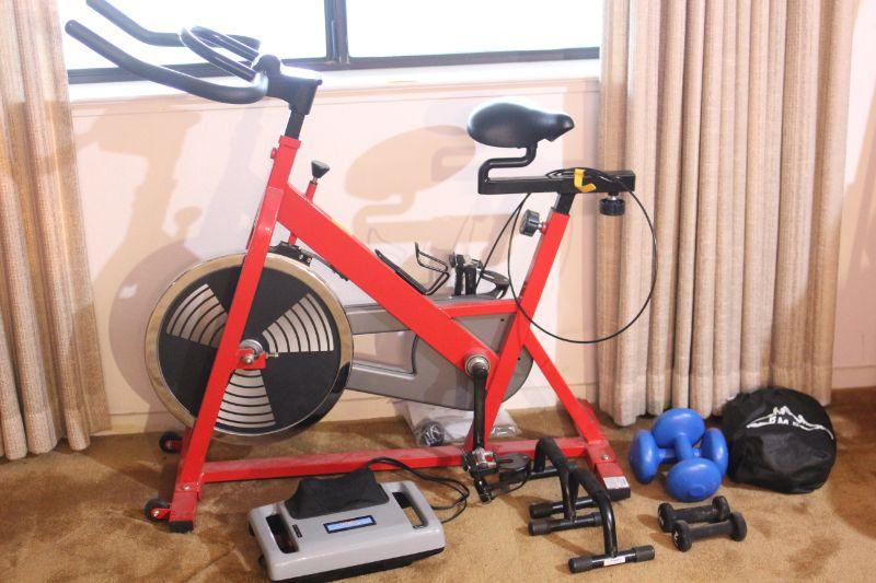 Lot 36 Sunny Indoor Cycling Bike, Weights, Neck Massage & More