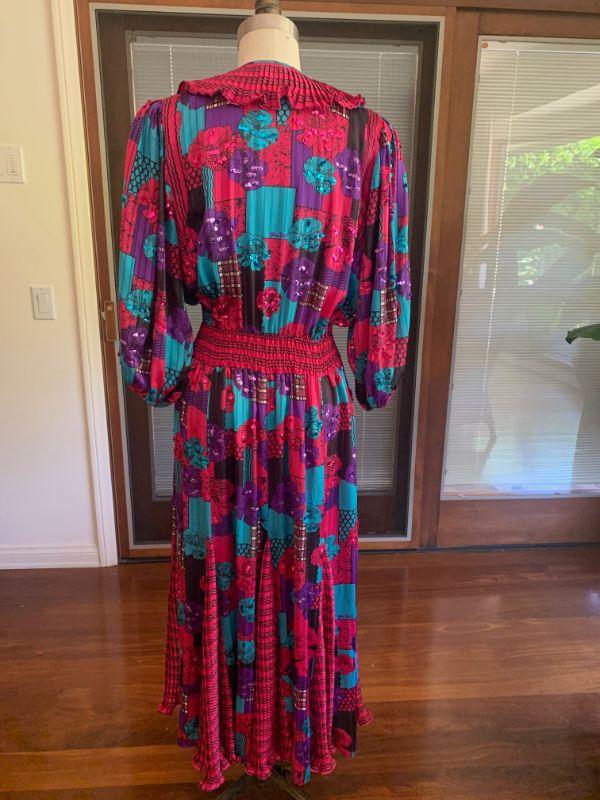 IB 36. VINTAGE DESIGNER FASHION BOHO CHIC DIANE FREIS GEORGETTE DRESS