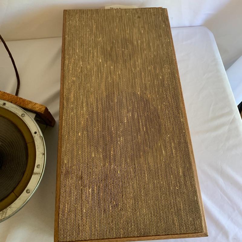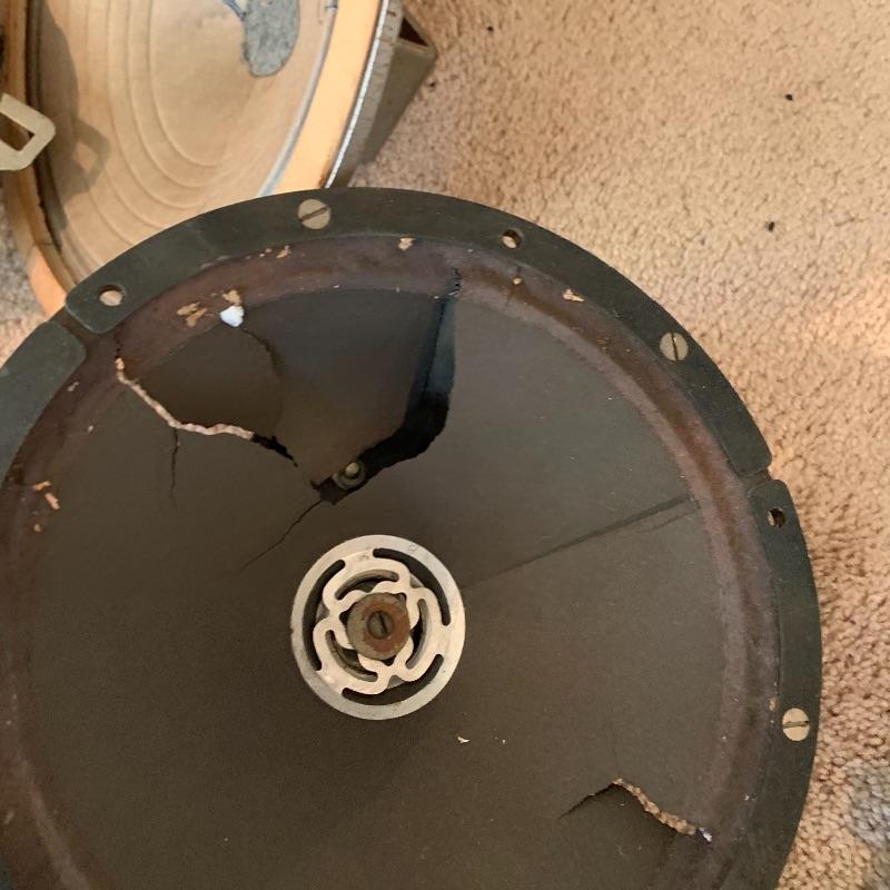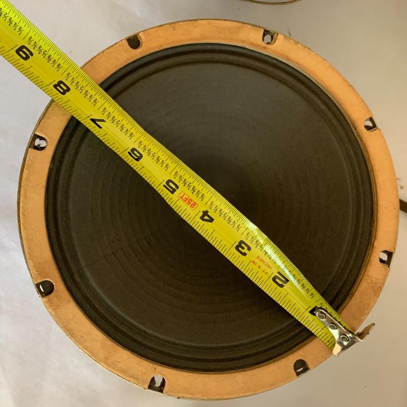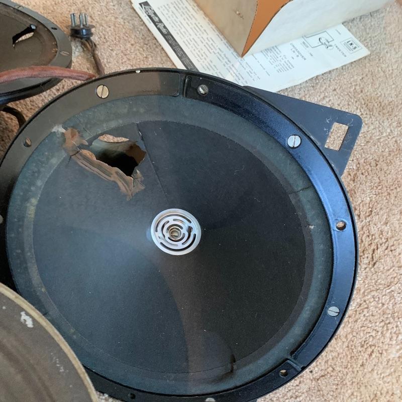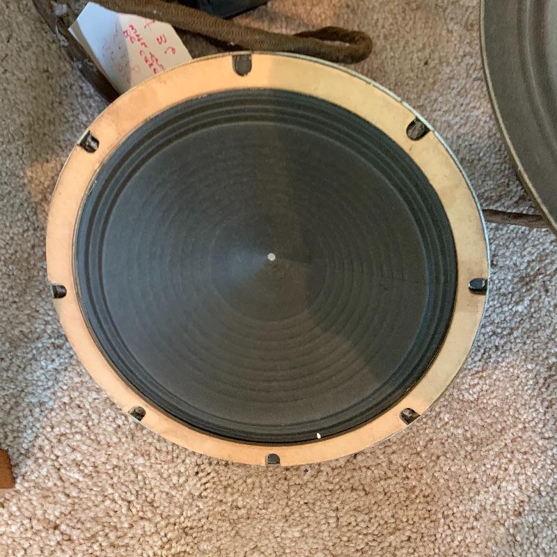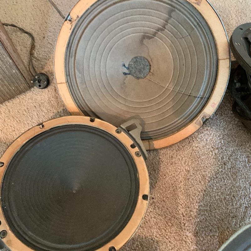 Vintage assorted radio speakers. The sizes are all different with the largest being 12”. There is also a single house speaker included in this lot.