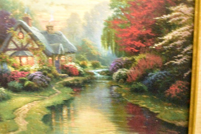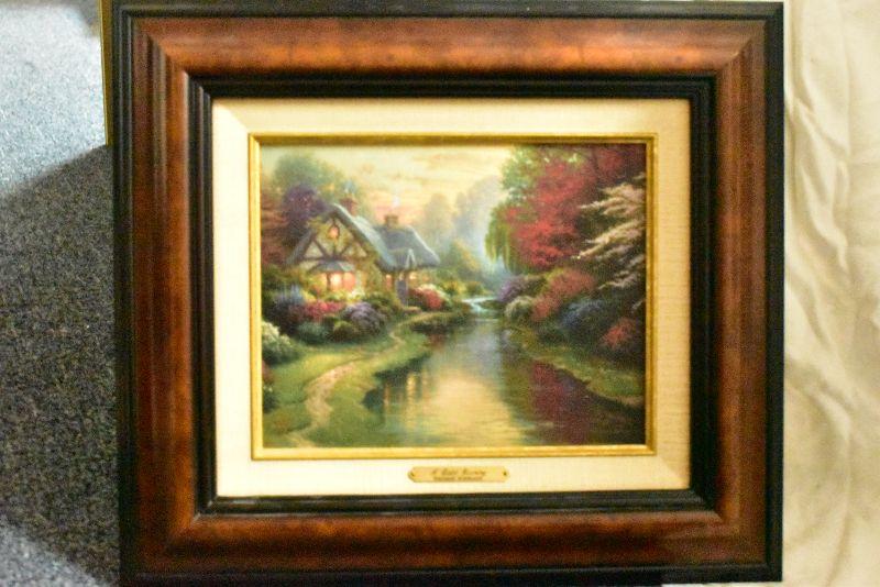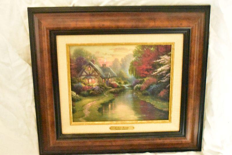 A Quiet Evening, a framed, enhanced print by Thomas Kindade. 15x16 including frame.
