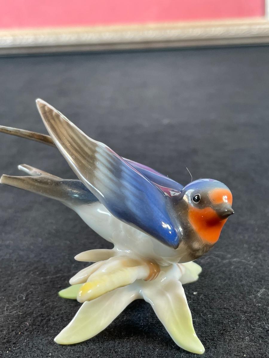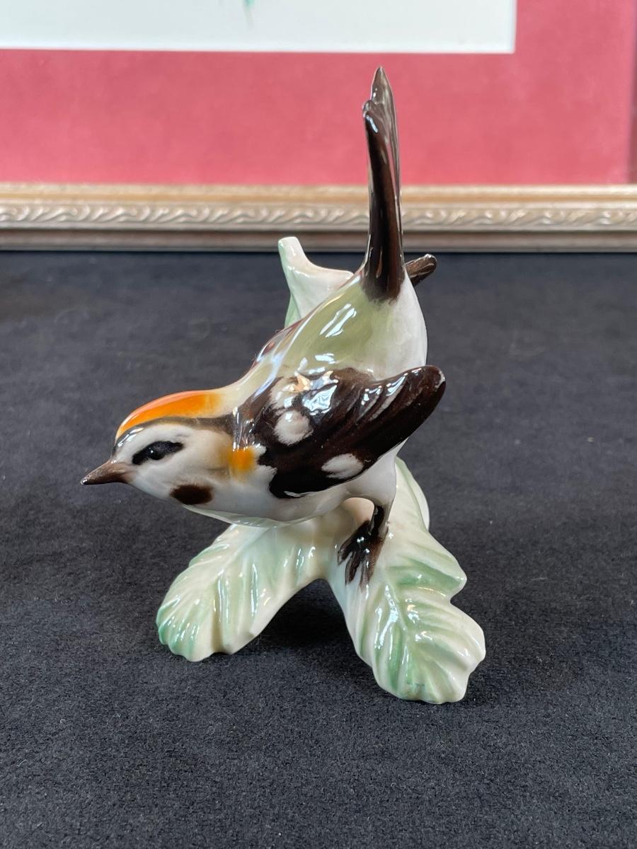 Lot 36. Watercolor and 3 German Porcelain Birds