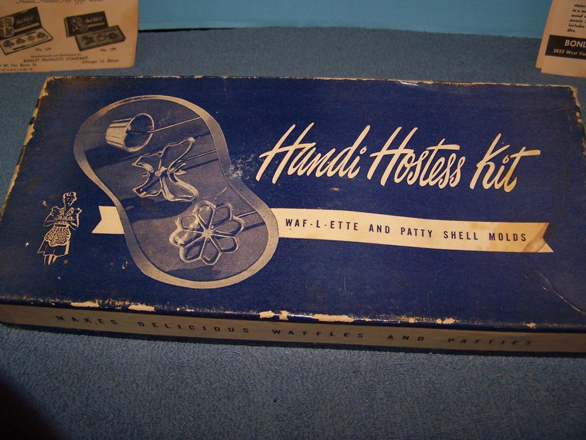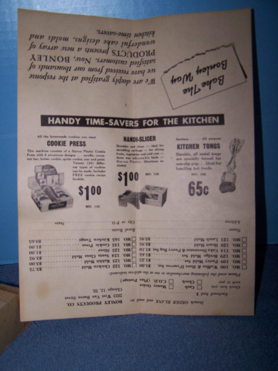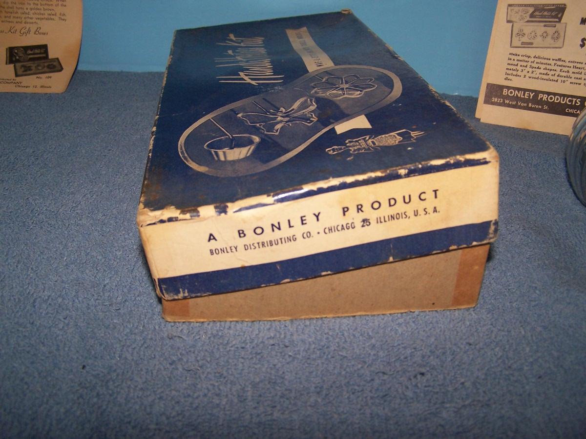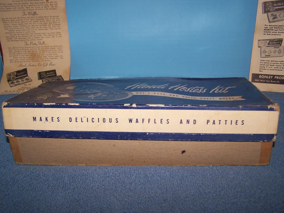 THIS A WONDERFUL LOT OF VINTAGE KITCHEN PIECES!!! SILEX POT IS 6 1/2'' TALL, AND A 1 1/2 CUP, SLIGHT WEAR.. ROSETTE MAKER BOX HAS WEAR..