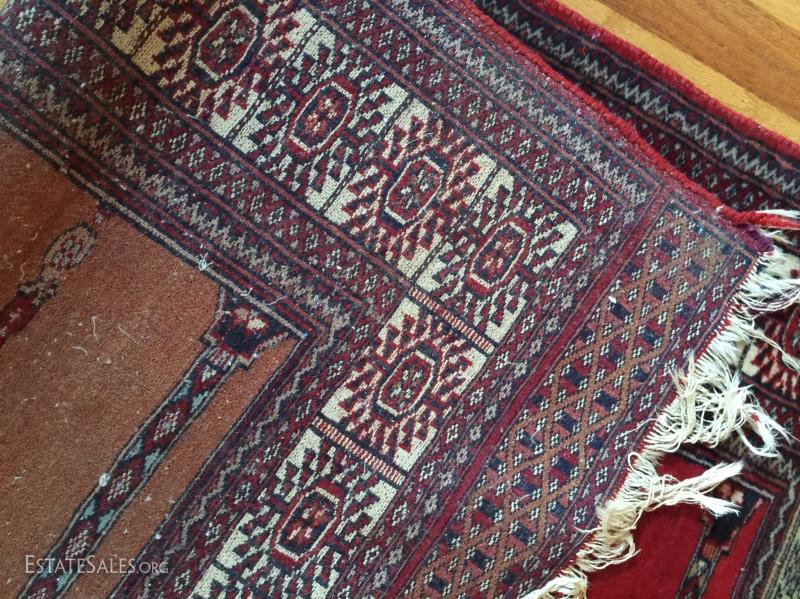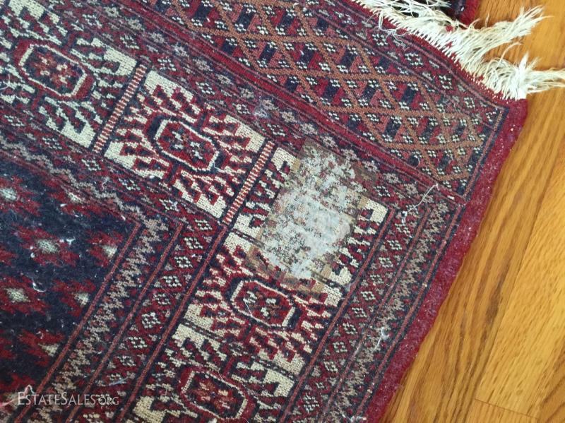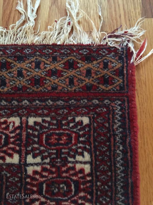 Woven Rug with fringe ends. See photos for details. Sold as is.