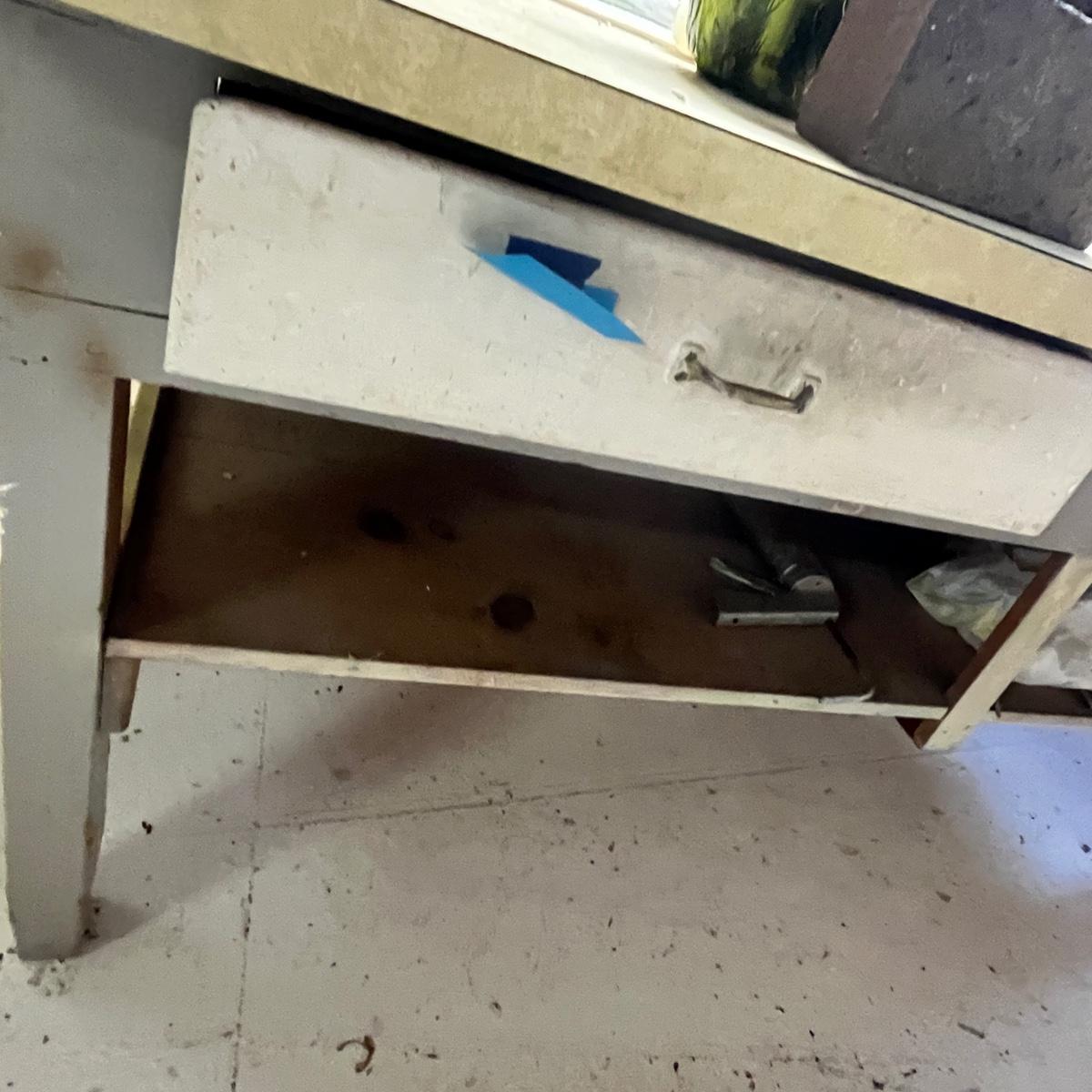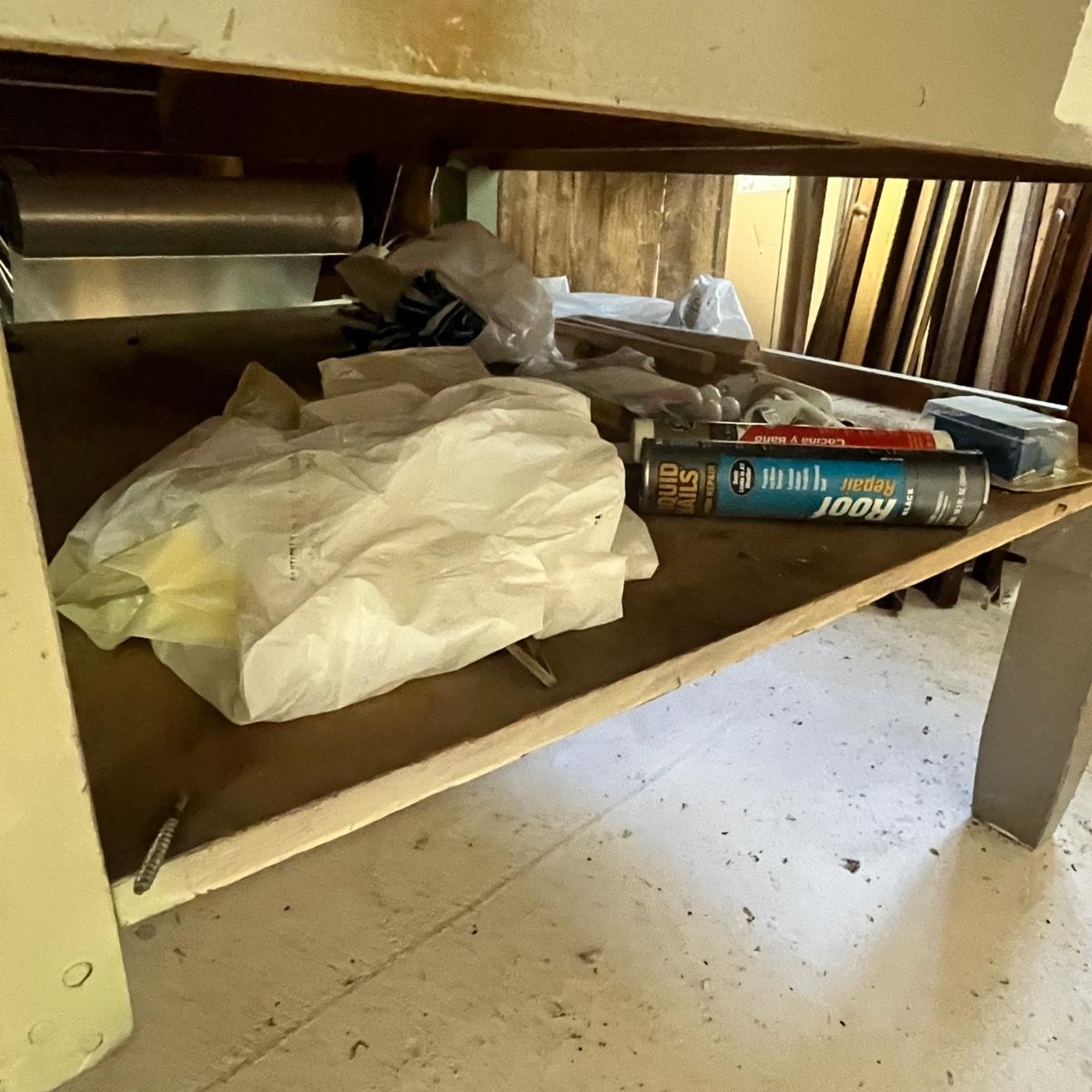 This is a very nice counter! Does come with all the goodies on the under shelf. Please bring help, we are unable to assist in moving it!