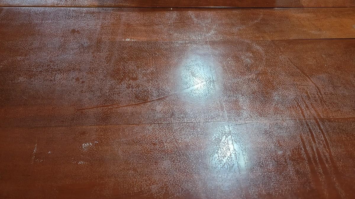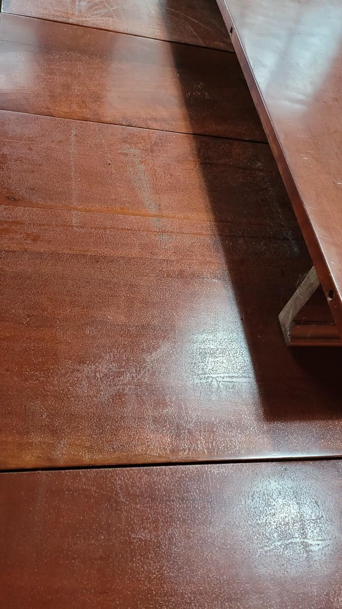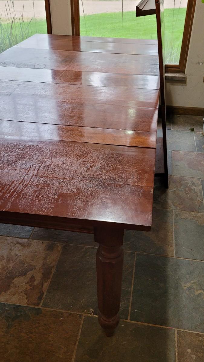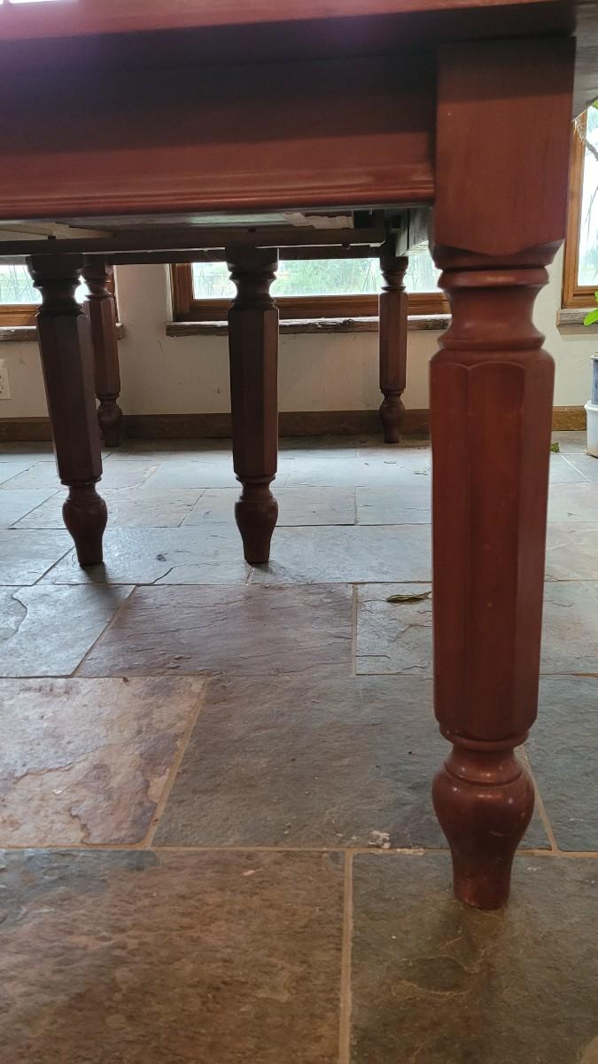 ◇◇2 of the leaves are in the table in the photos. There is a residue on the table top from a plastic Tablecloth. Needs a little refurbishment by someone more qualified than our team.◇◇