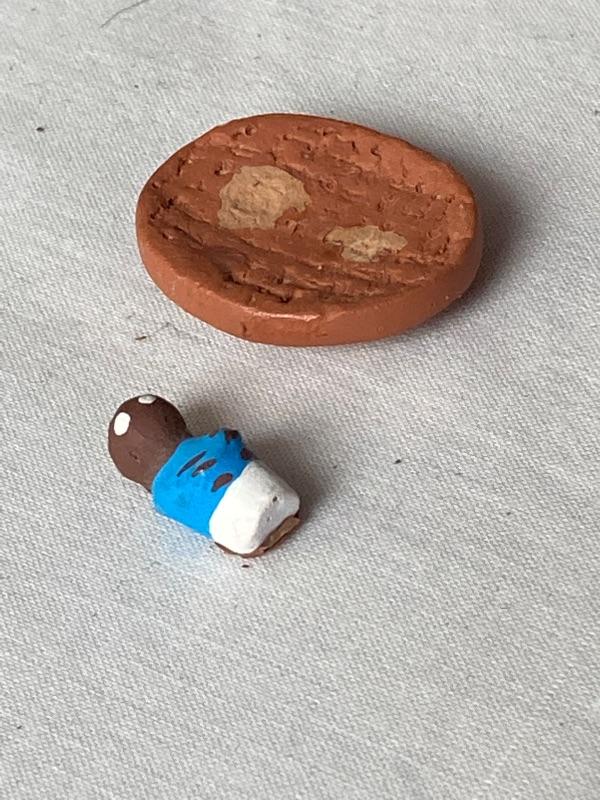 Hand painted clay figurines with a hit made out of coconut. Baby Jesus needs to be glued (see photos)