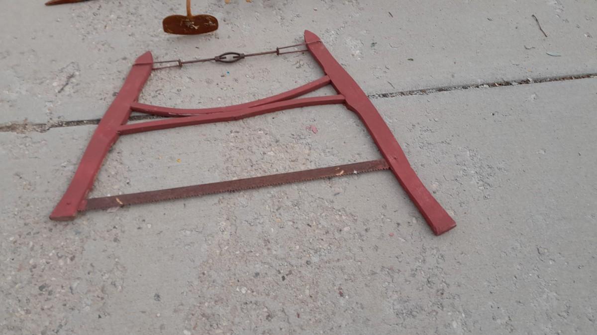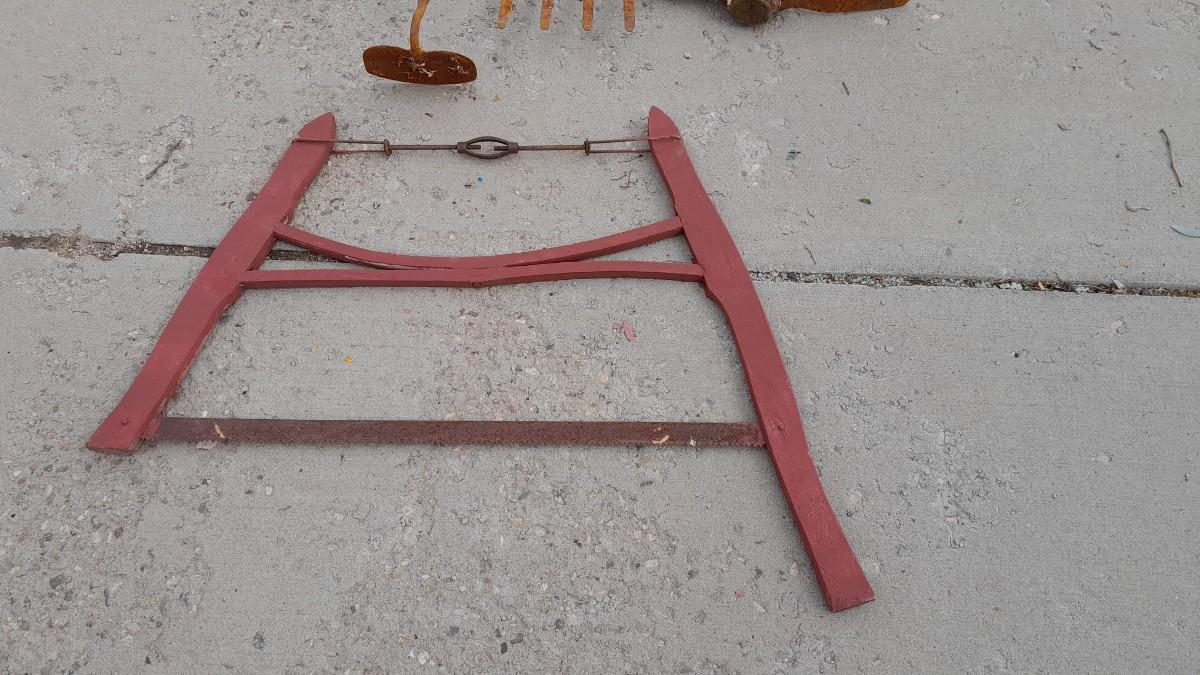 LOT 360 RUSTY FARM TOOLS, AND VINTAGE BUCK SAW (WS)