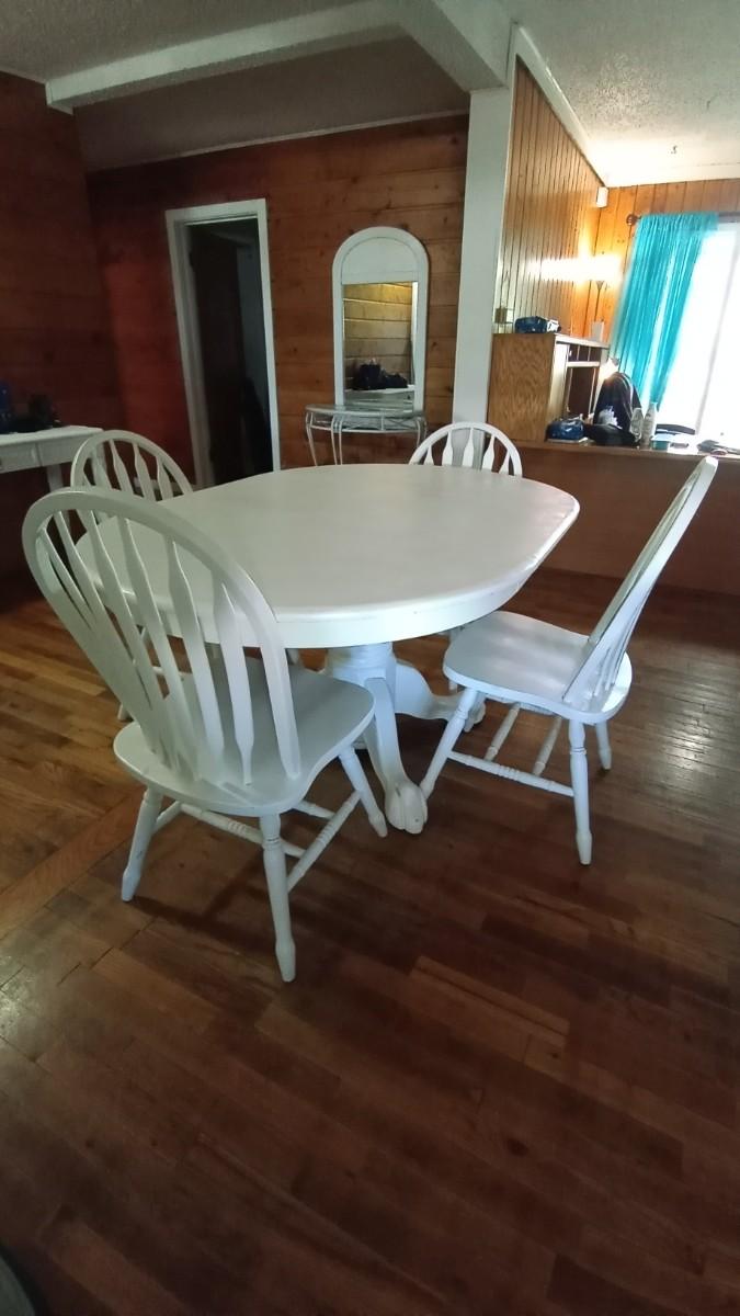 LOT 360 WOODEN WHITEWASHED TABLE & FOUR CHAIRS