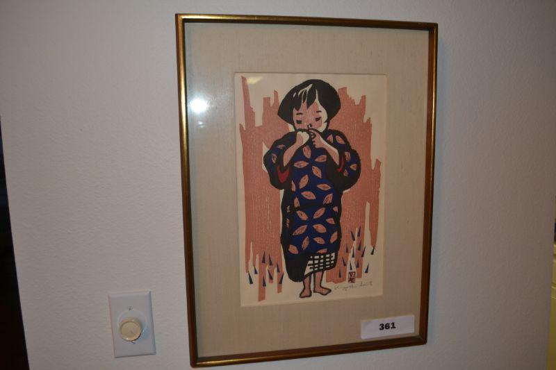LOT 361 VINTAGE BLOCK PRINT PENCIL SIGNED BY KIYOSHI SAITO