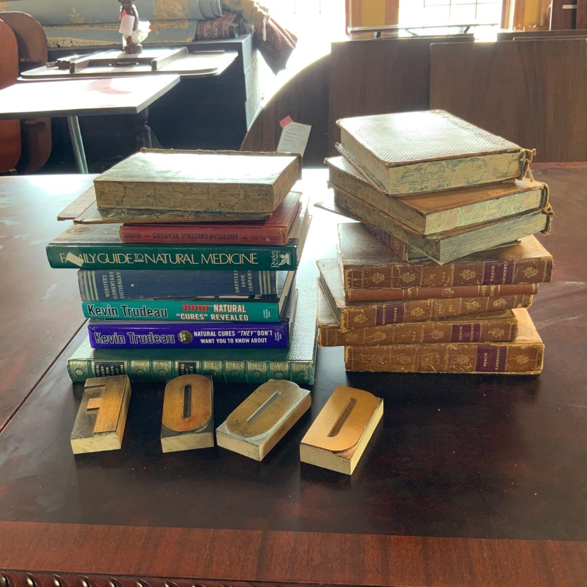 Antique to modern books as seen here. “Food” Letter blocks too! //::\\ Please see photos for details and condition. No attempt has been made to hide any imperfections. All items listed in this auction are warehouse items, and need to be cleaned. A majority of the items need restoration as well. All items are sold AS IS and WITHOUT GUARANTEE. If you are uncertain about an item, DO NOT BID. Due to the nature of this online auction in-person inspection is HIGHLY recommended. All Sales are FINAL. Pick Up Times are FIRM. Please confirm with your own schedule that you can pick up in the scheduled times listed in the Terms and Conditions. Any questions please message the auctioneer. DO NOT Contact The Harp Gallery.