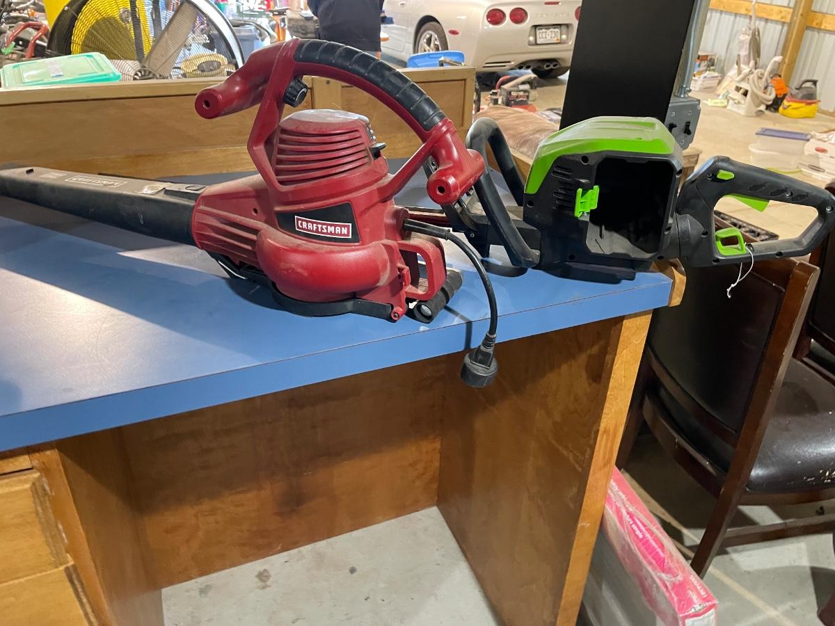 Greenworks leaf headge trimmer, craftsman leaf blower with batteries (not tested)