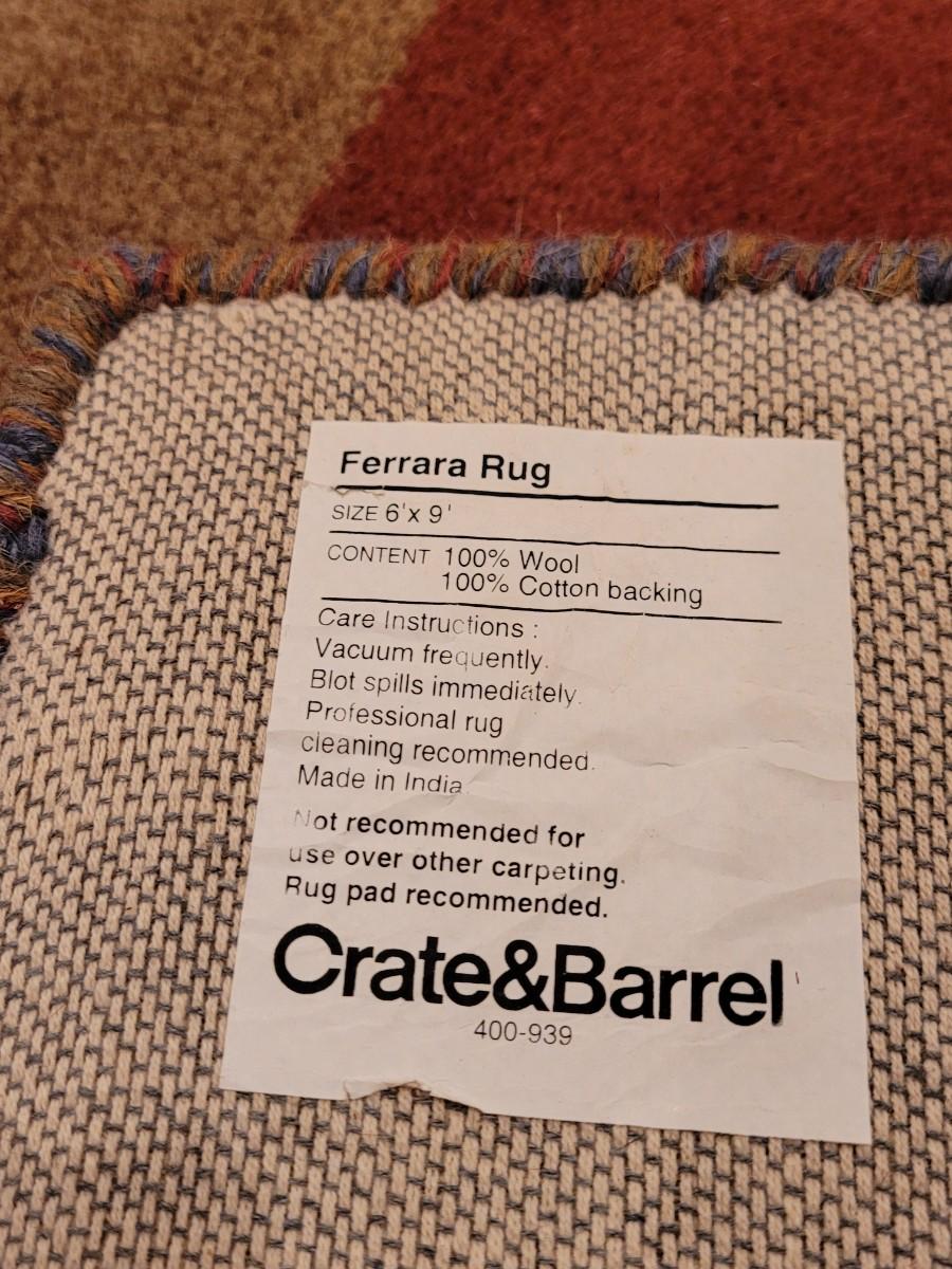 Lot 362: Crate & Barrel Area Rug (has indents from furniture)