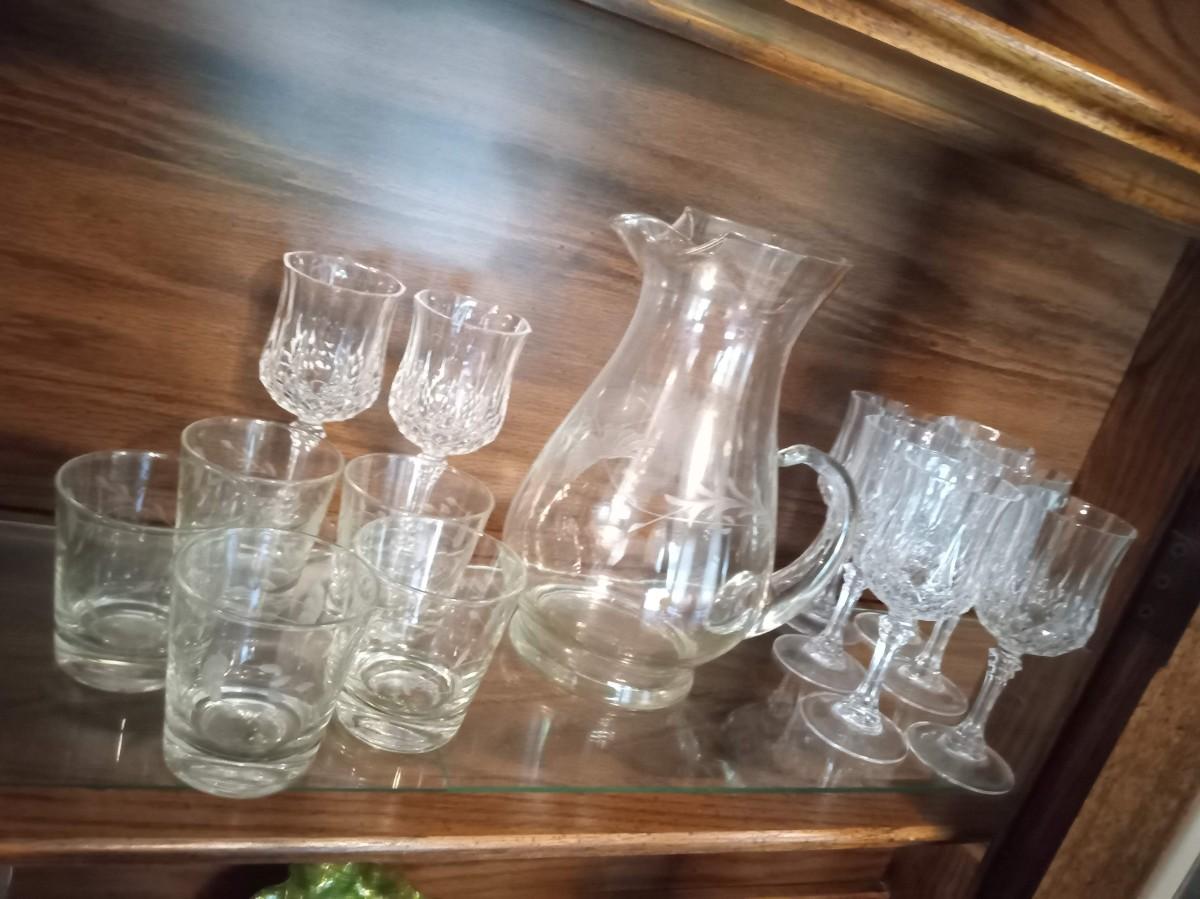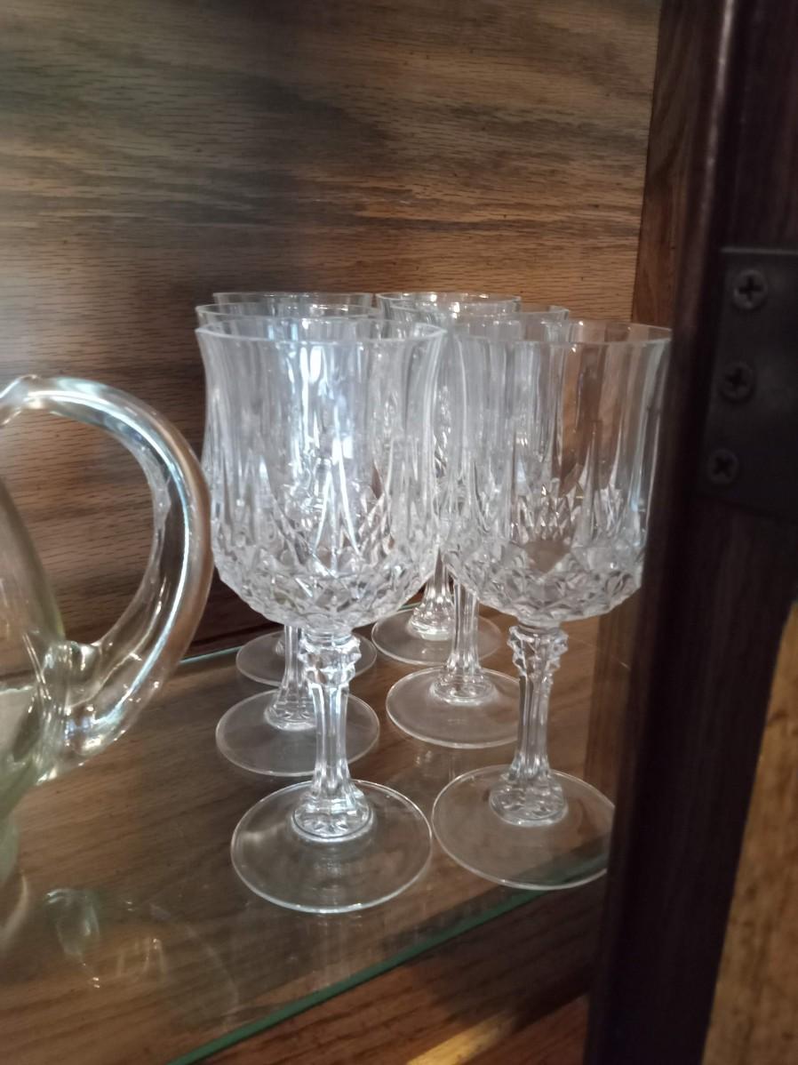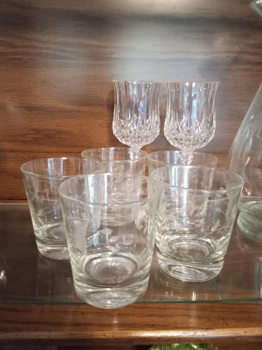 8 CRYSTAL STEMMED GLASSES, 5 HIGHBALL GLASSES