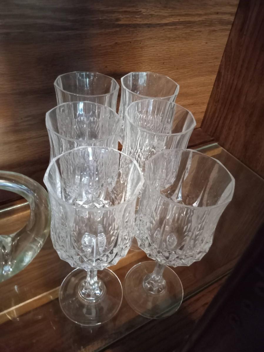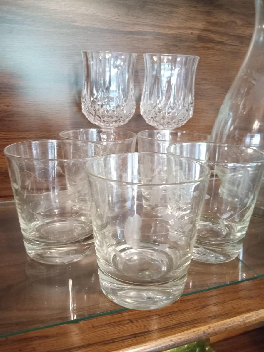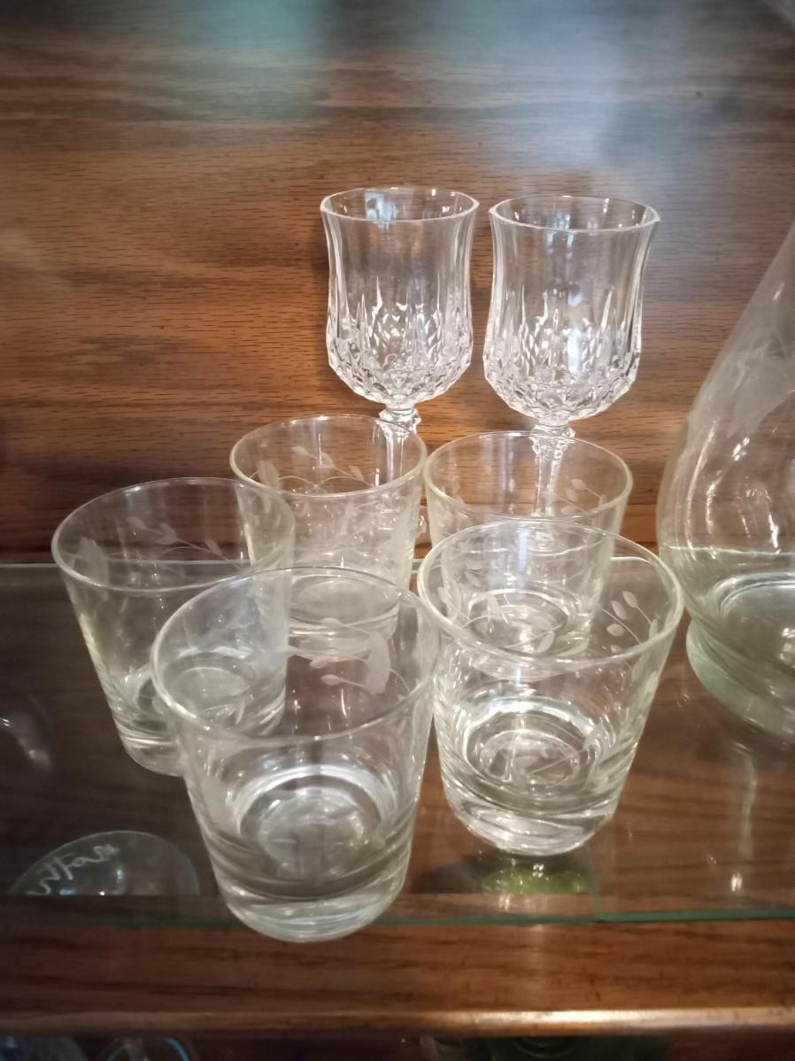 8 CRYSTAL STEMMED GLASSES, 5 HIGHBALL GLASSES