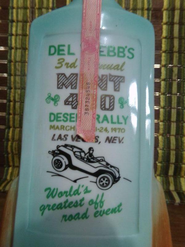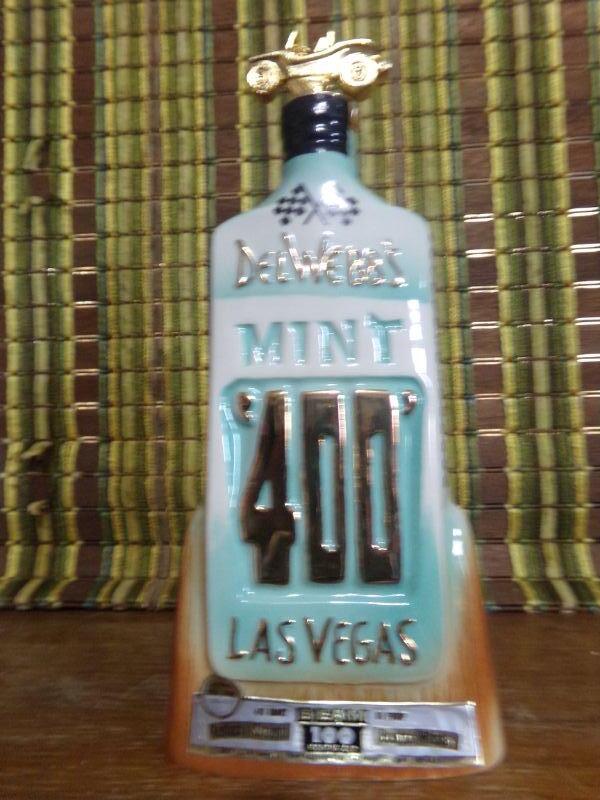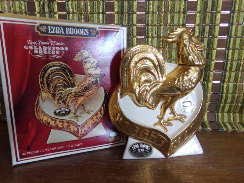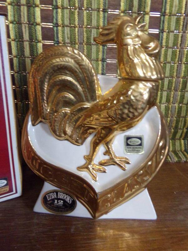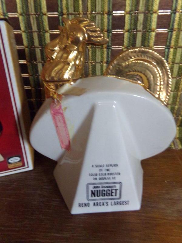 GOLD ROOSTER NUGGET CLASSIC, BUFFALO HUNT, AND DEL WEBB'S MINT 400 LAS VEGAS DECANTERS.