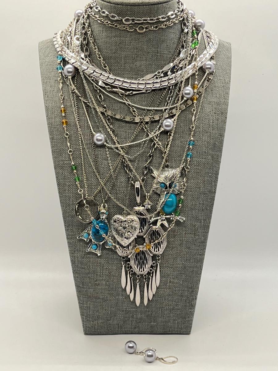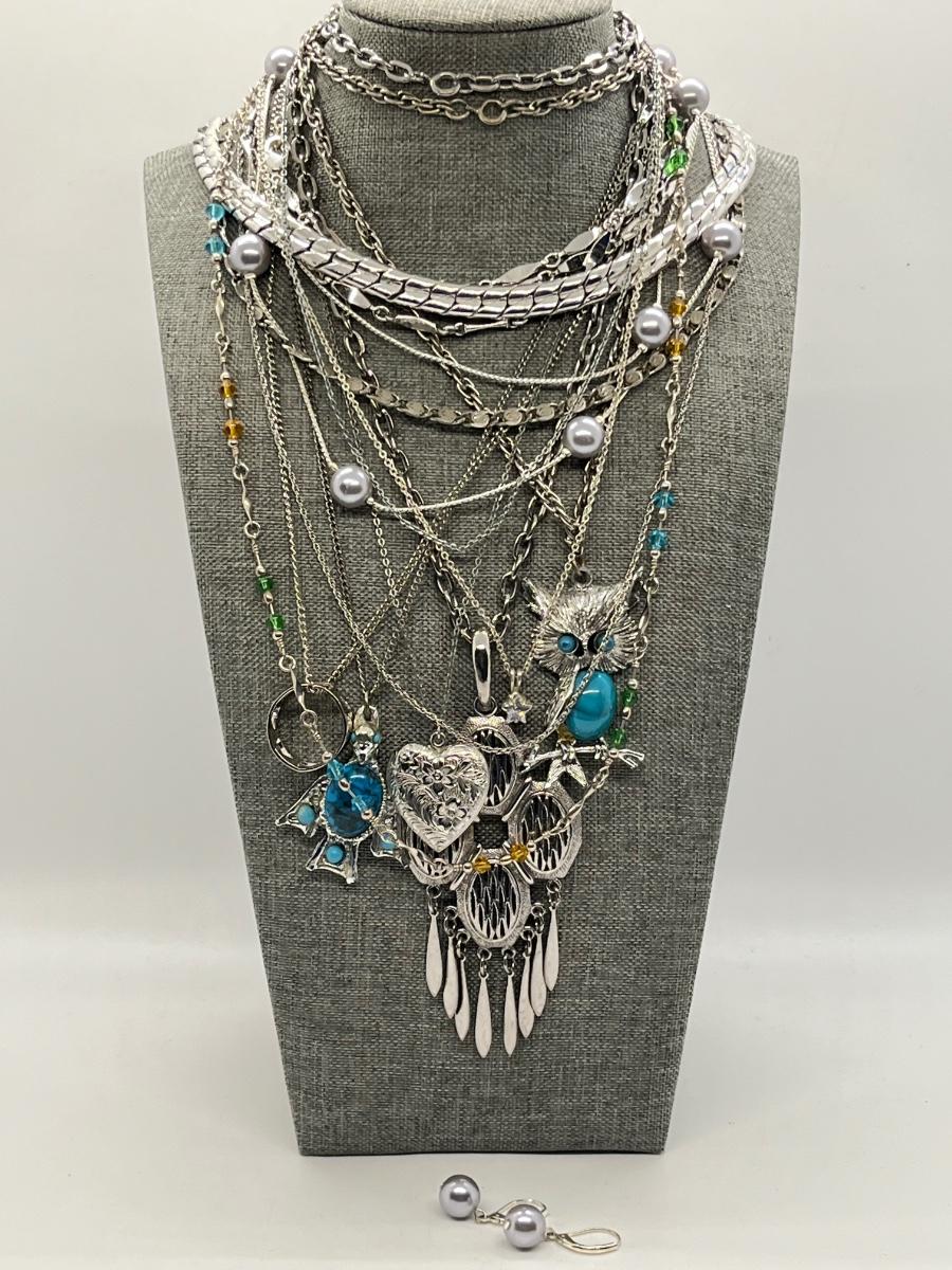 Lot 362J: Silvertone Costume Necklaces