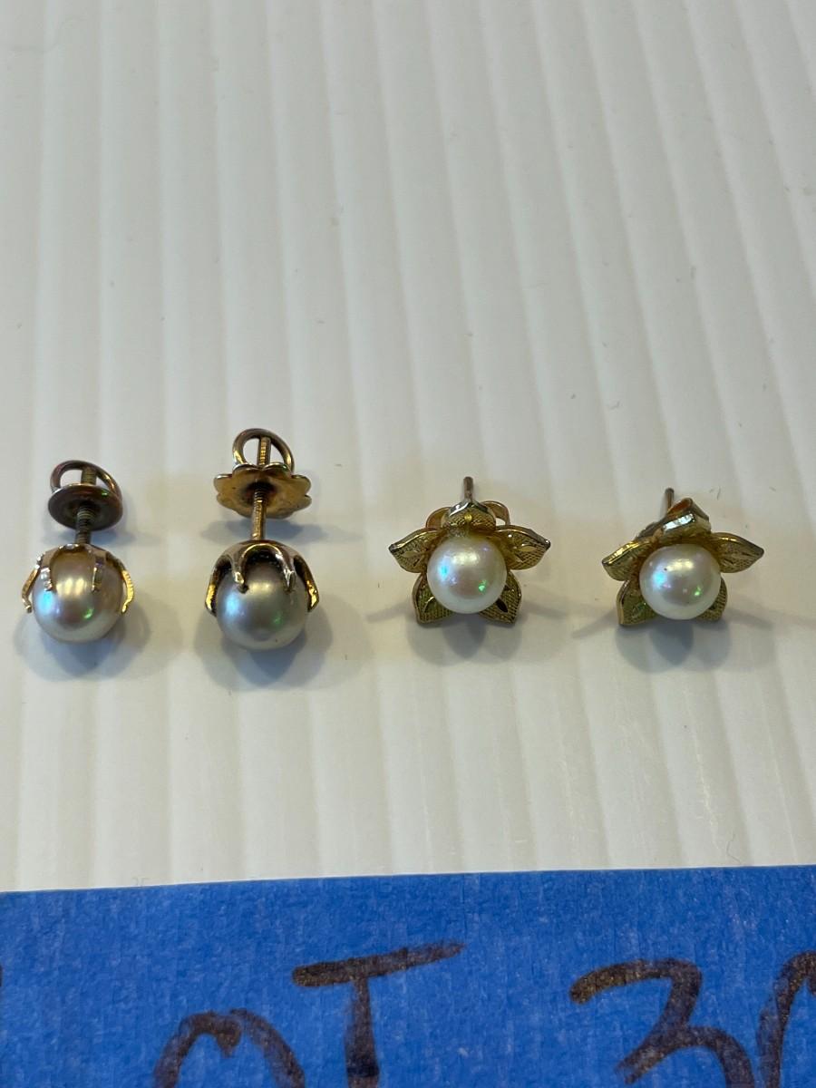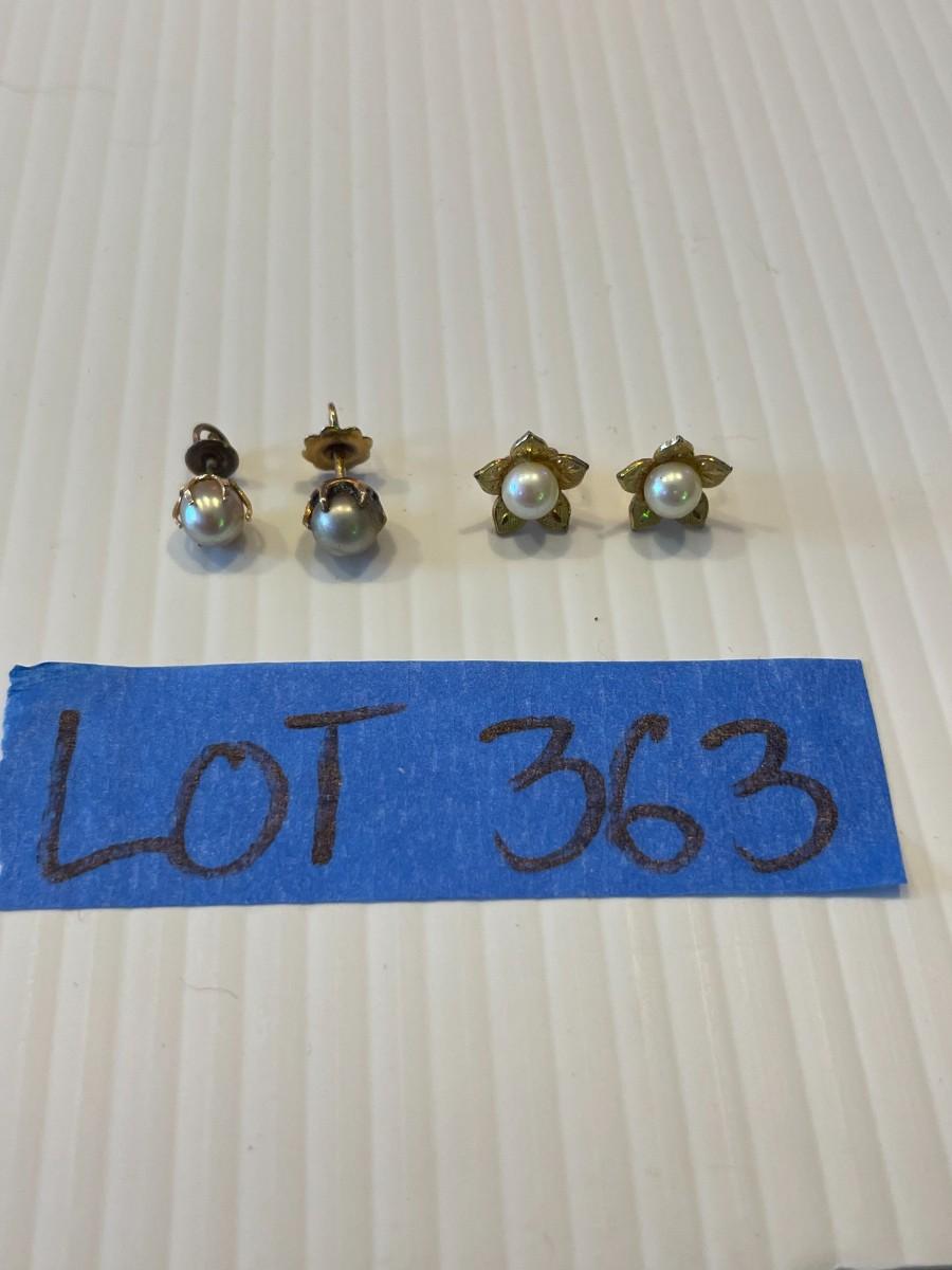 lot 363- 2 pairs of 14K gold and cultured pearl earrings 2 pairs
