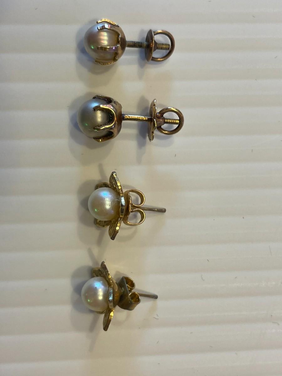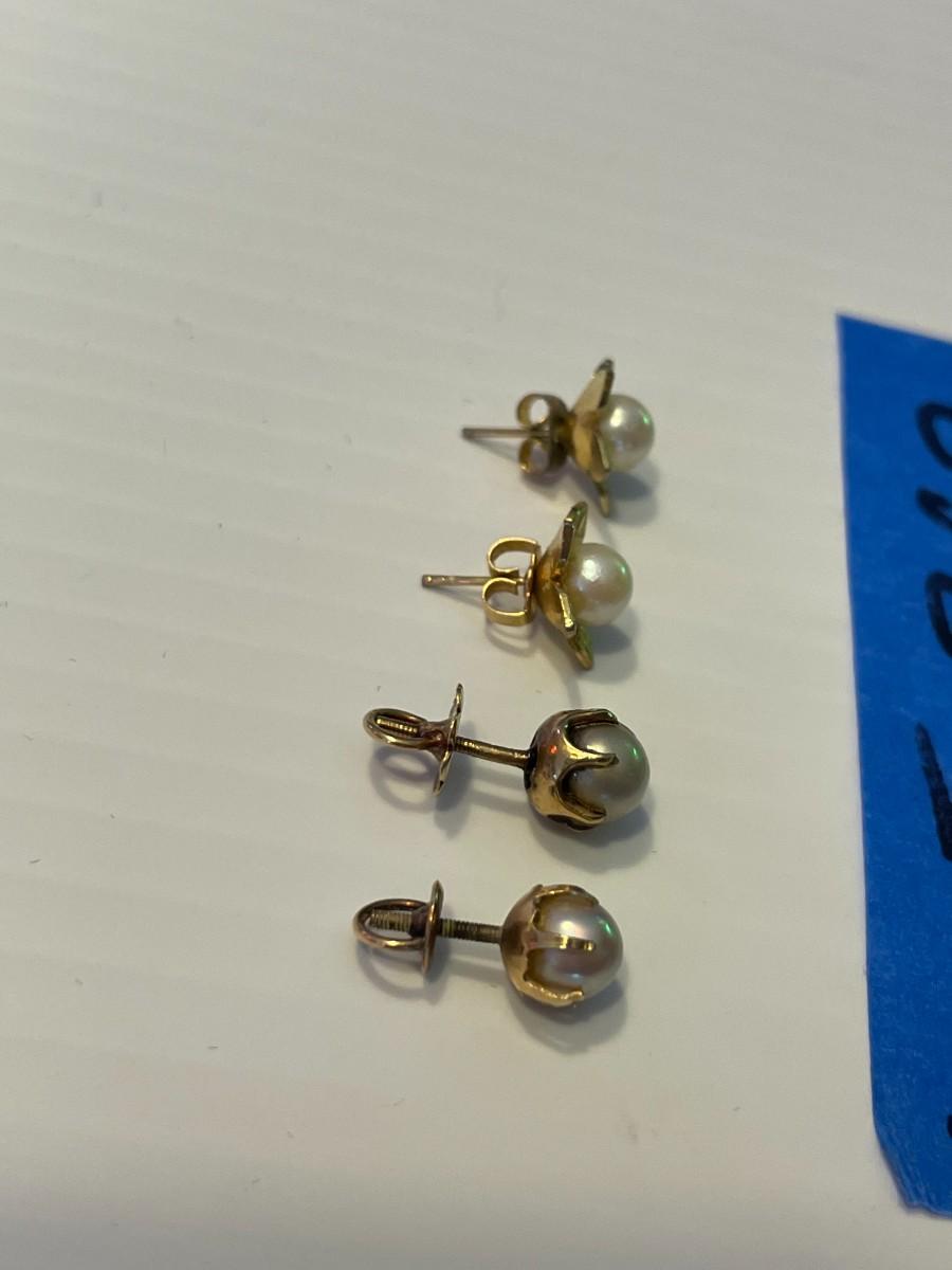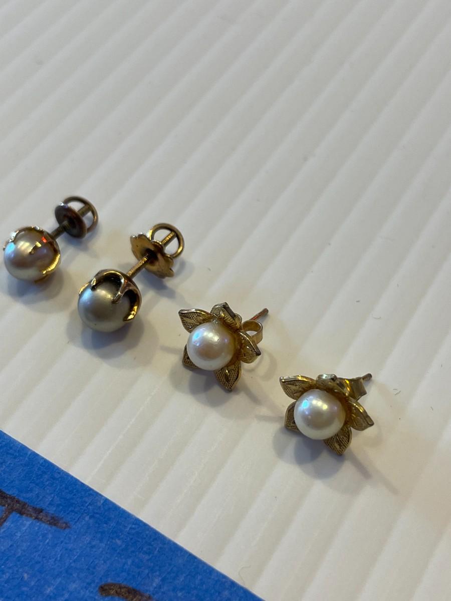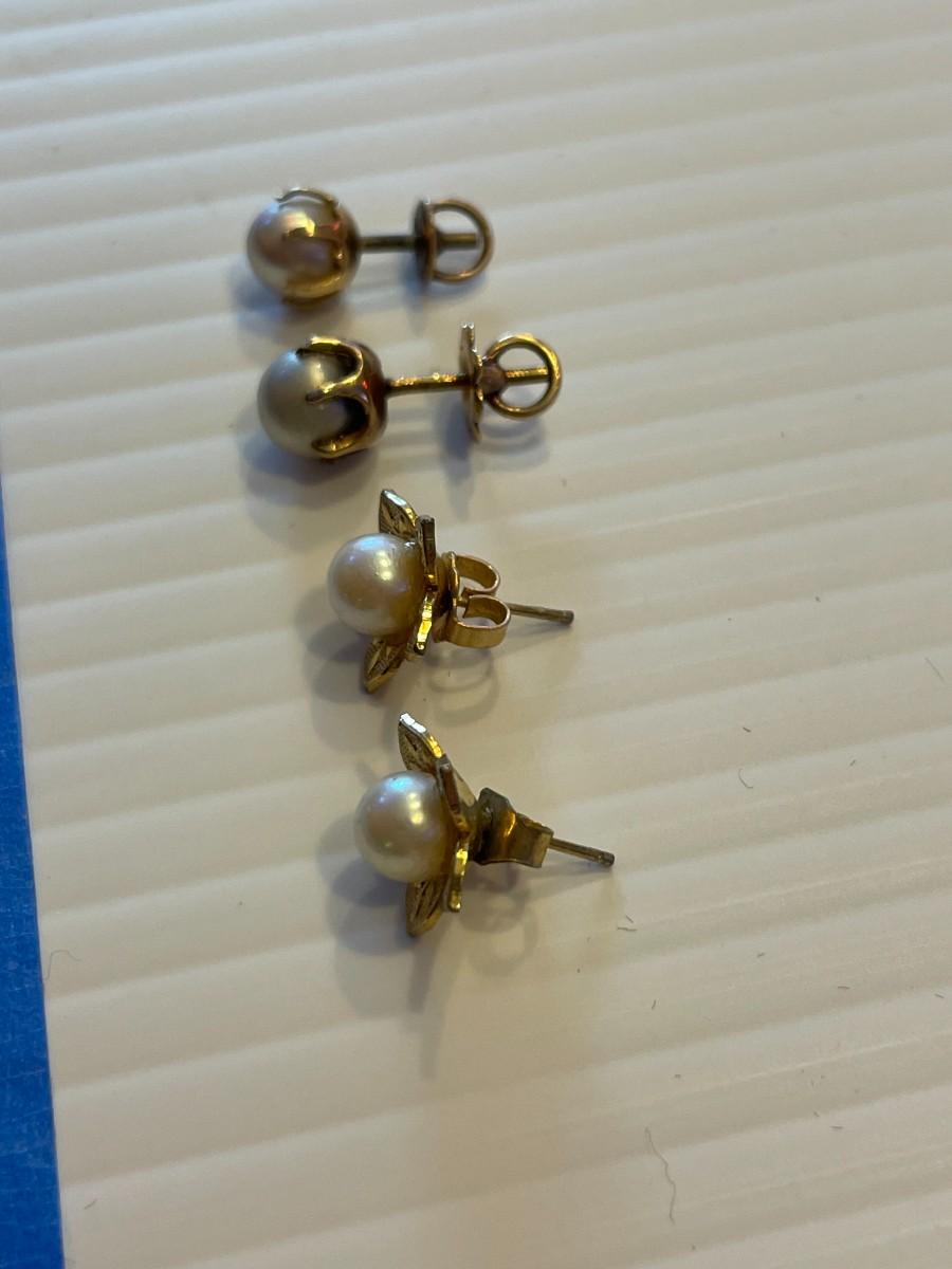 2 pairs of 14K gold and cultured pearl earrings 2 pairs.