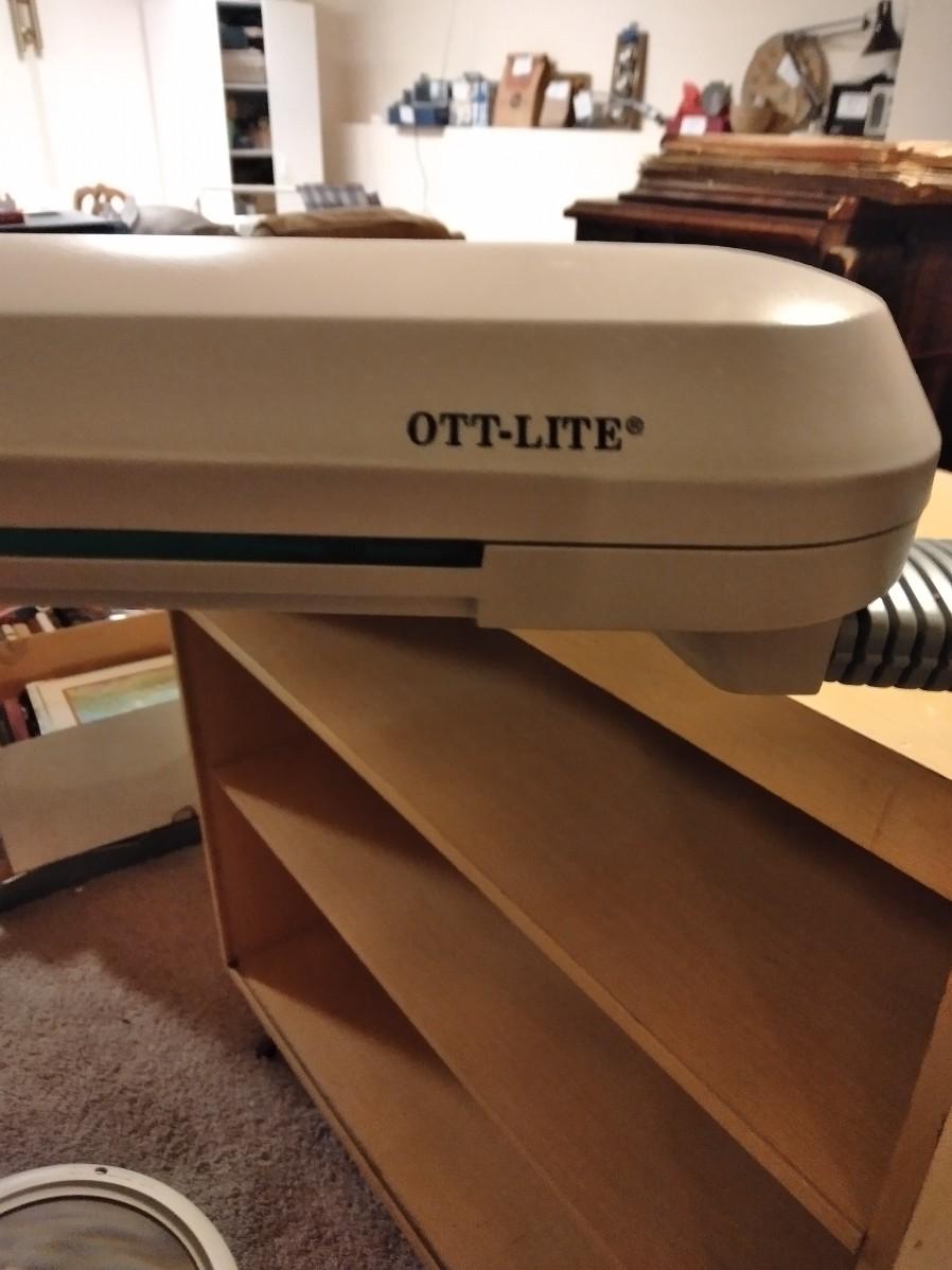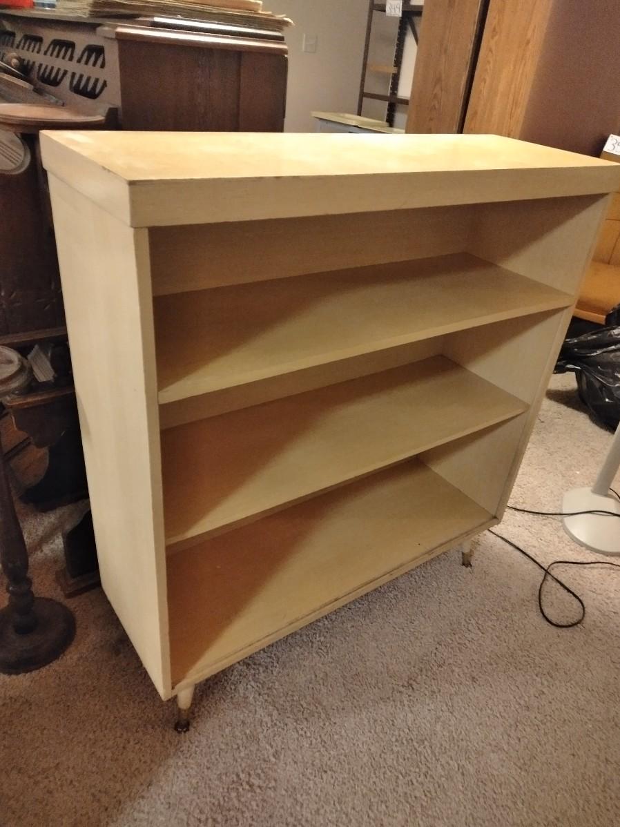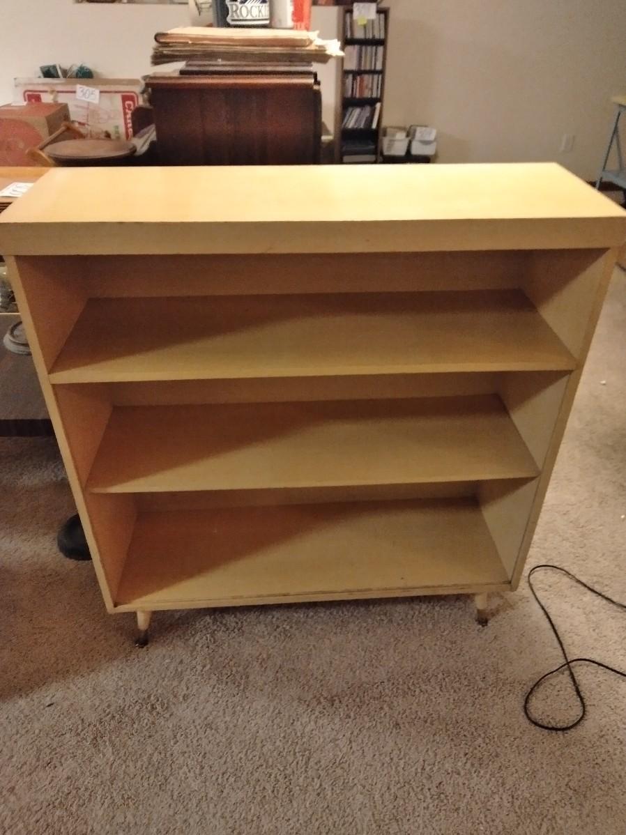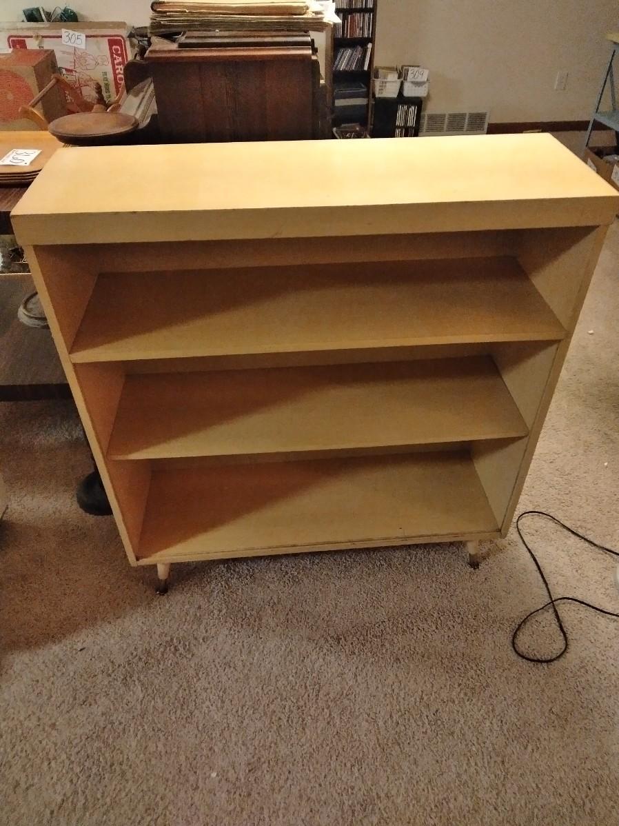 LOT 363 60'S STYLE BOOKCASE WITH MAGNIFYING CRAFT LIGHT
