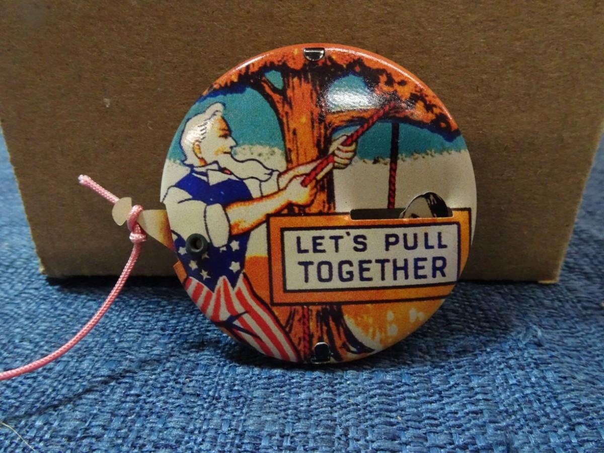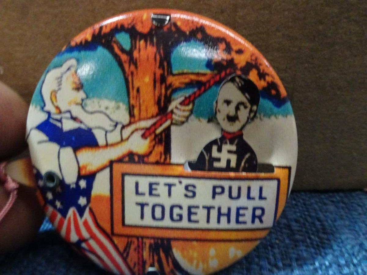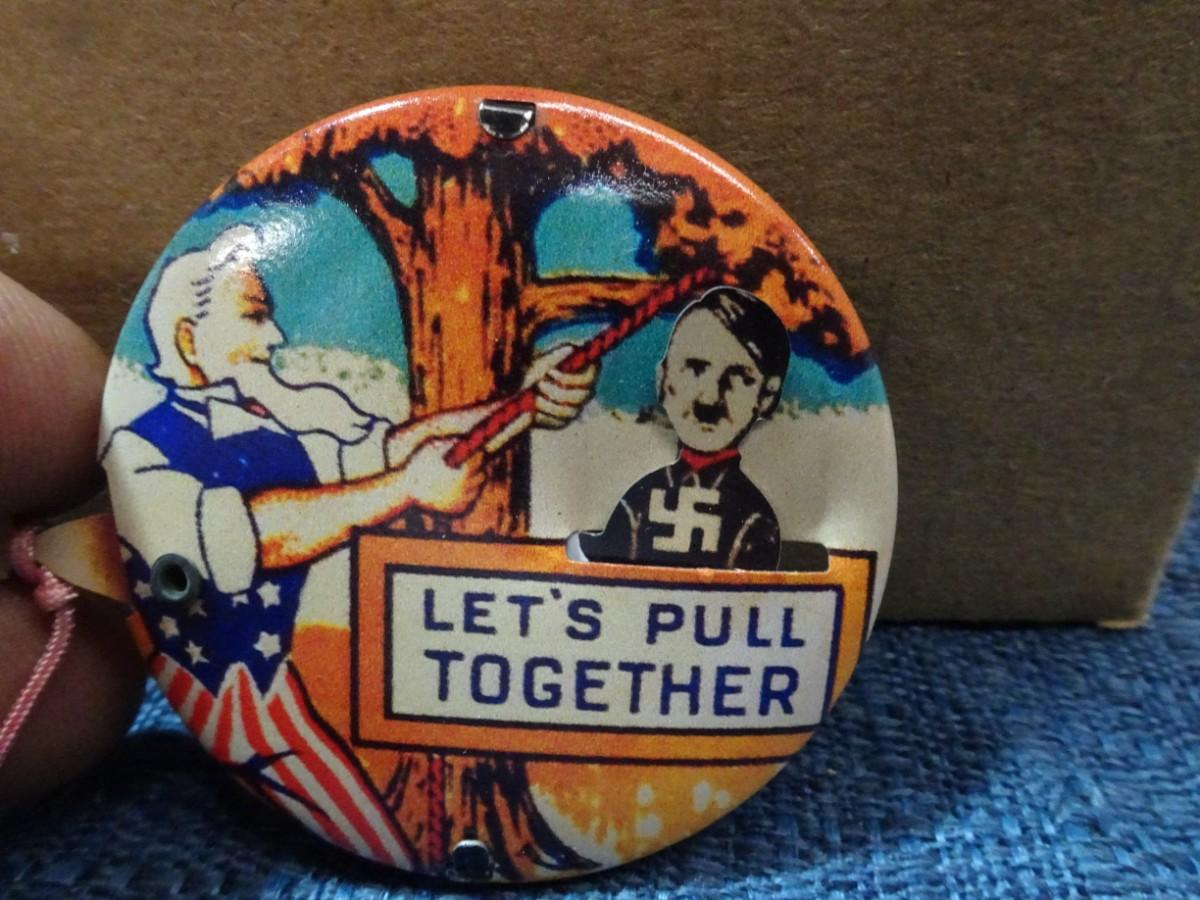 LOT 363 WORLD WAR II MECHANICAL BUTTON UNCLE SAM HANGING HITLER