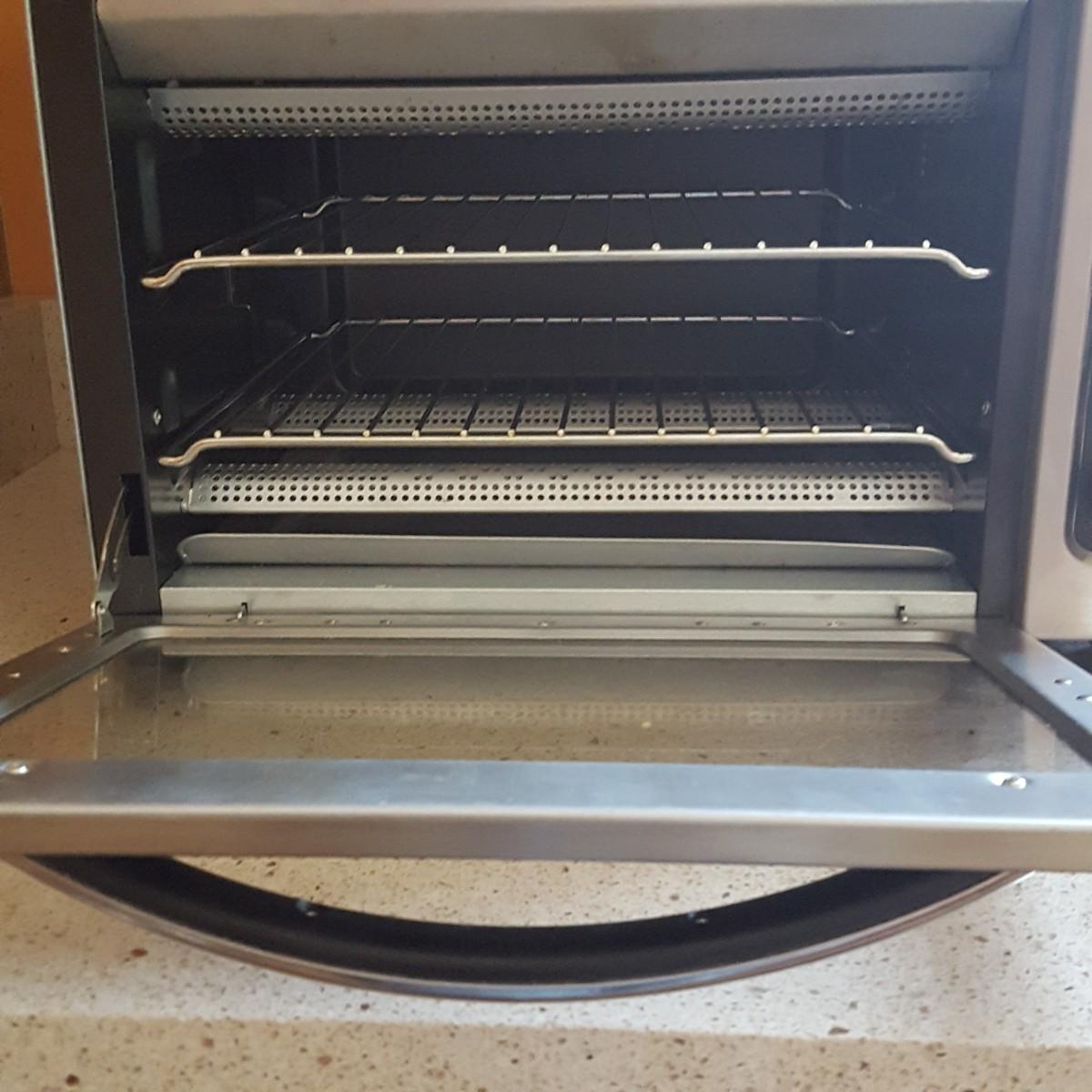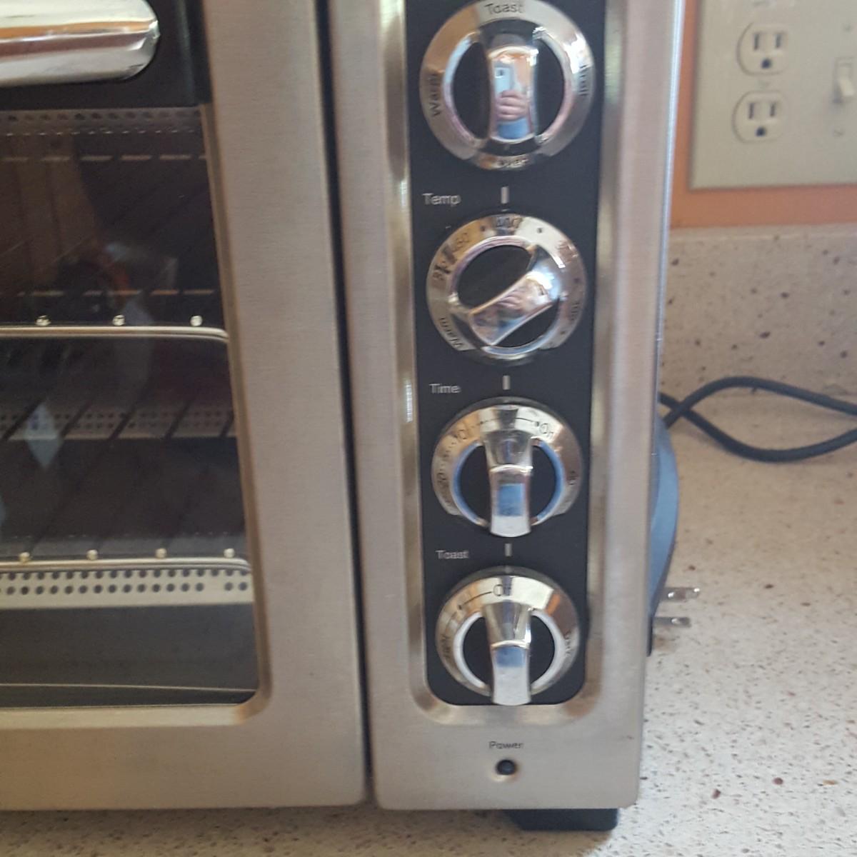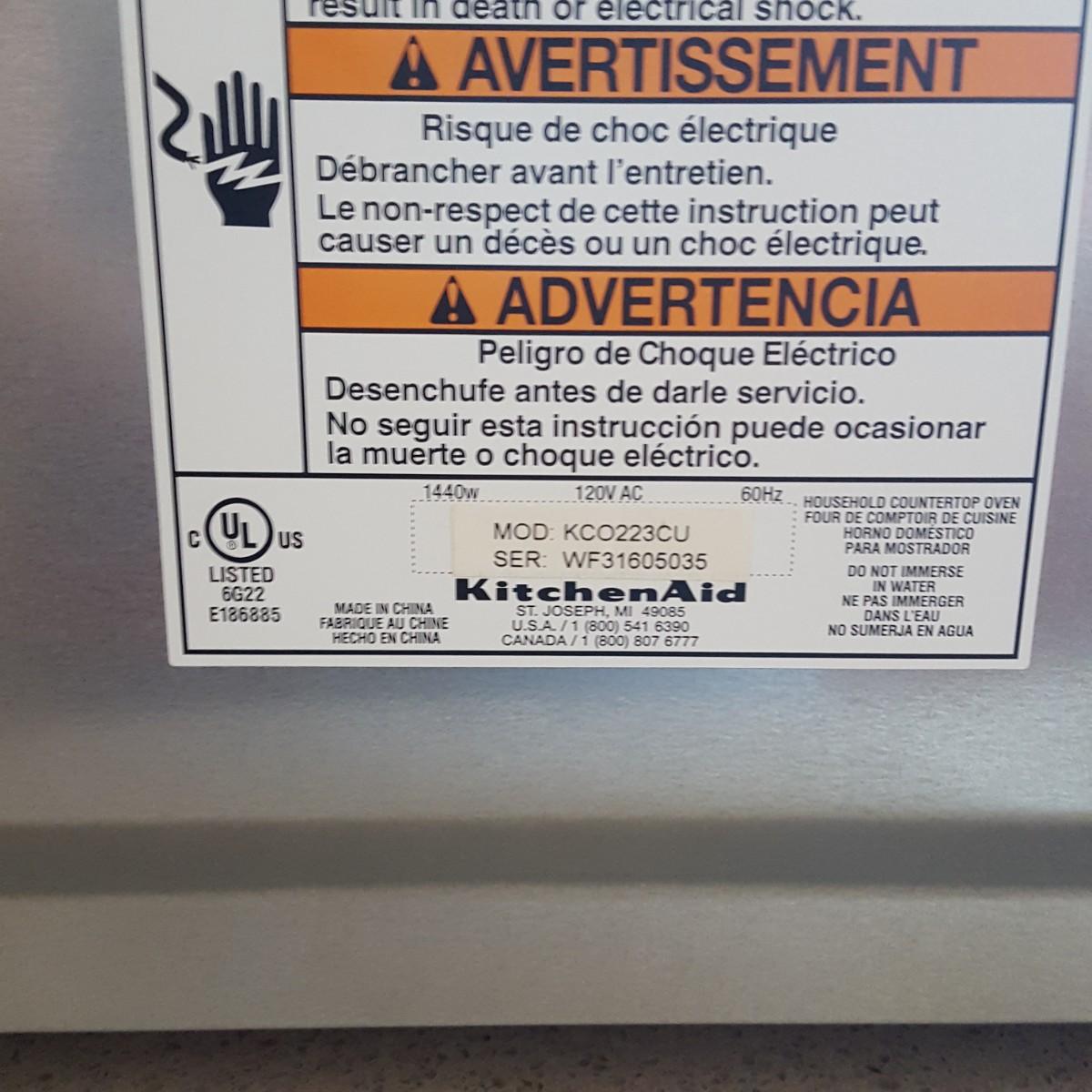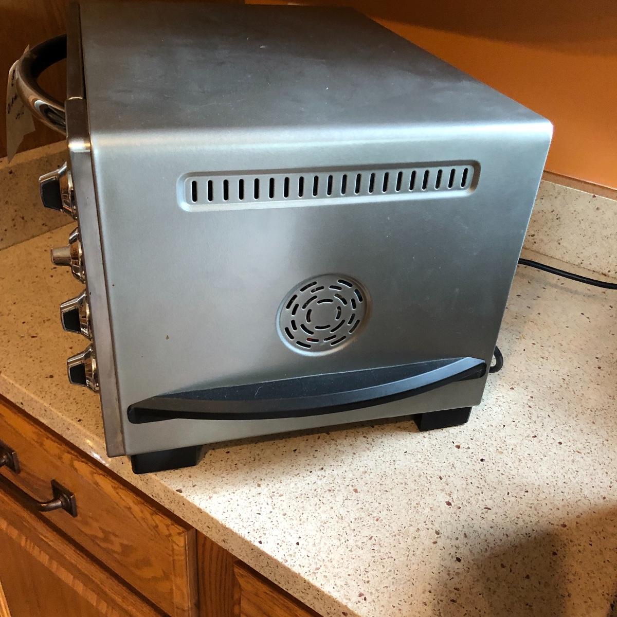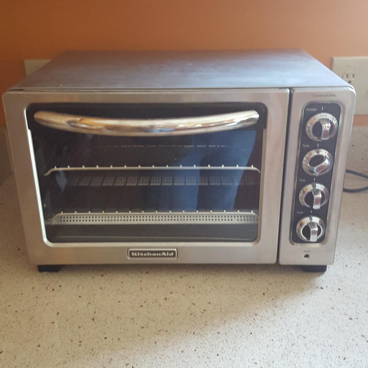 It's a Kitchen Aid Toaster Oven in great shape! It's a model number KCO223CU countertop oven. The knobs are for Temp, Time and Toast. You can warm things up, toast, and bake in there! This toaster oven would be great for the college student! The oven measures 18"x15"x12". Local pick-up only.