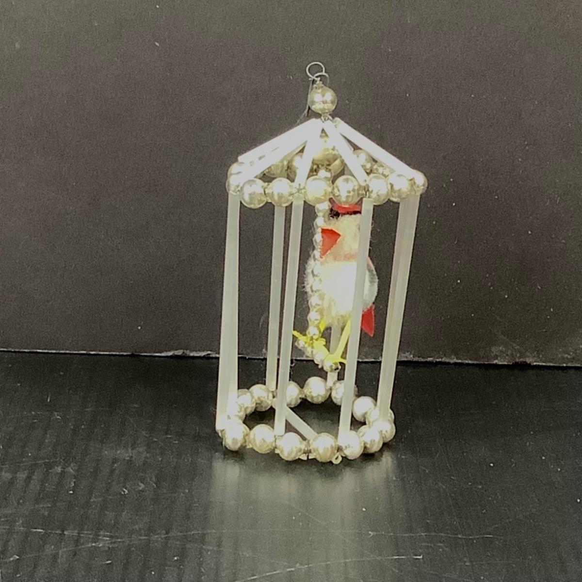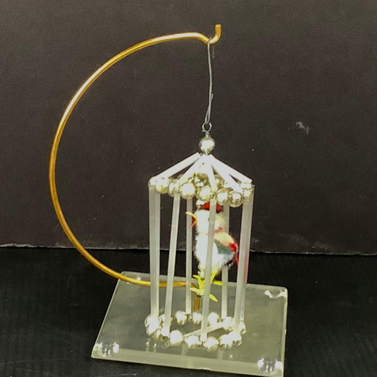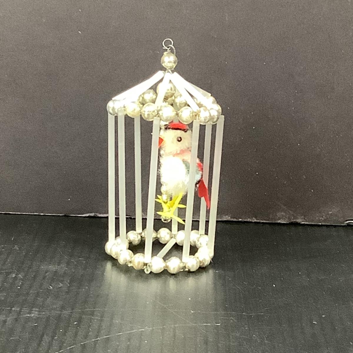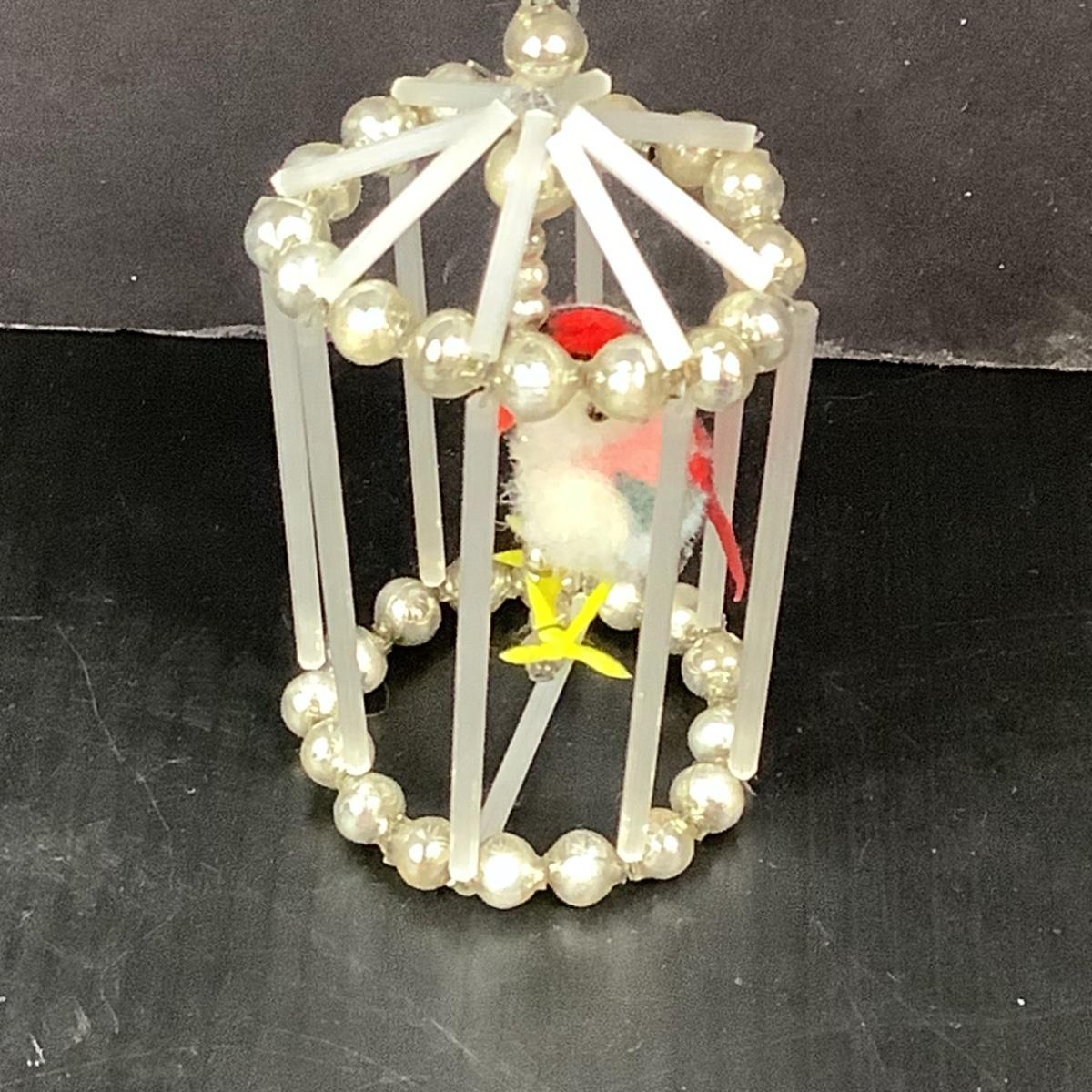 Lot 363 Vintage Gablonzer ( 1990 ) Blown Mercury Glass Beaded Bird Cage with Bird