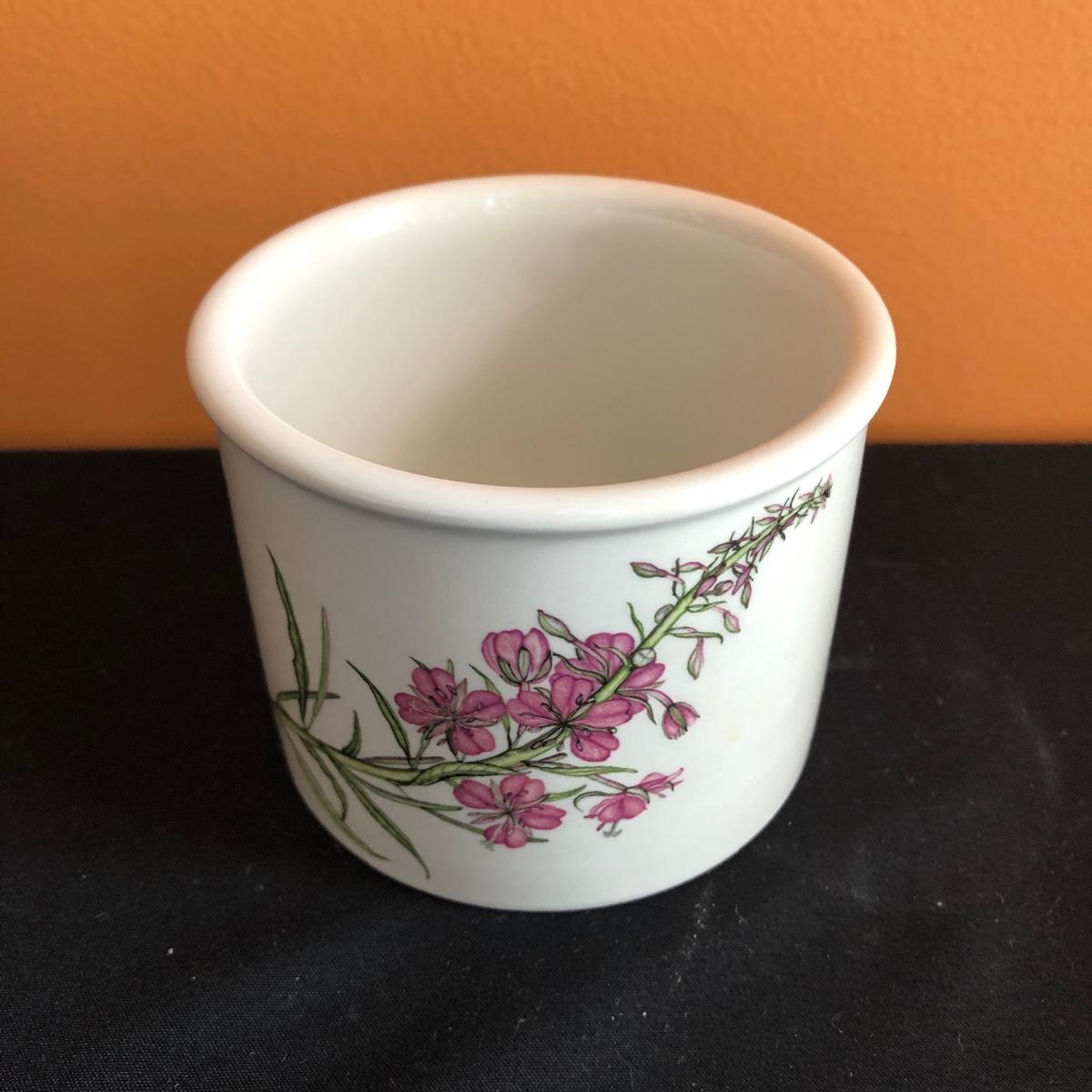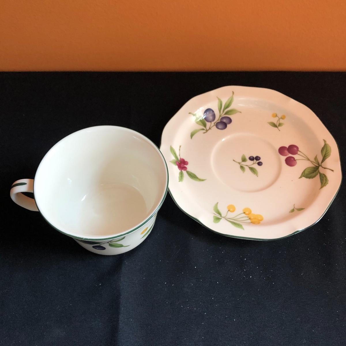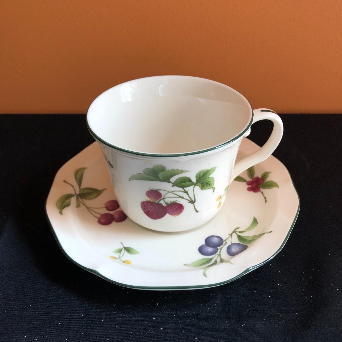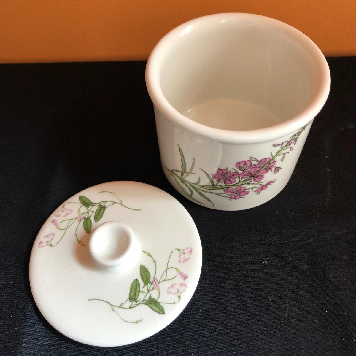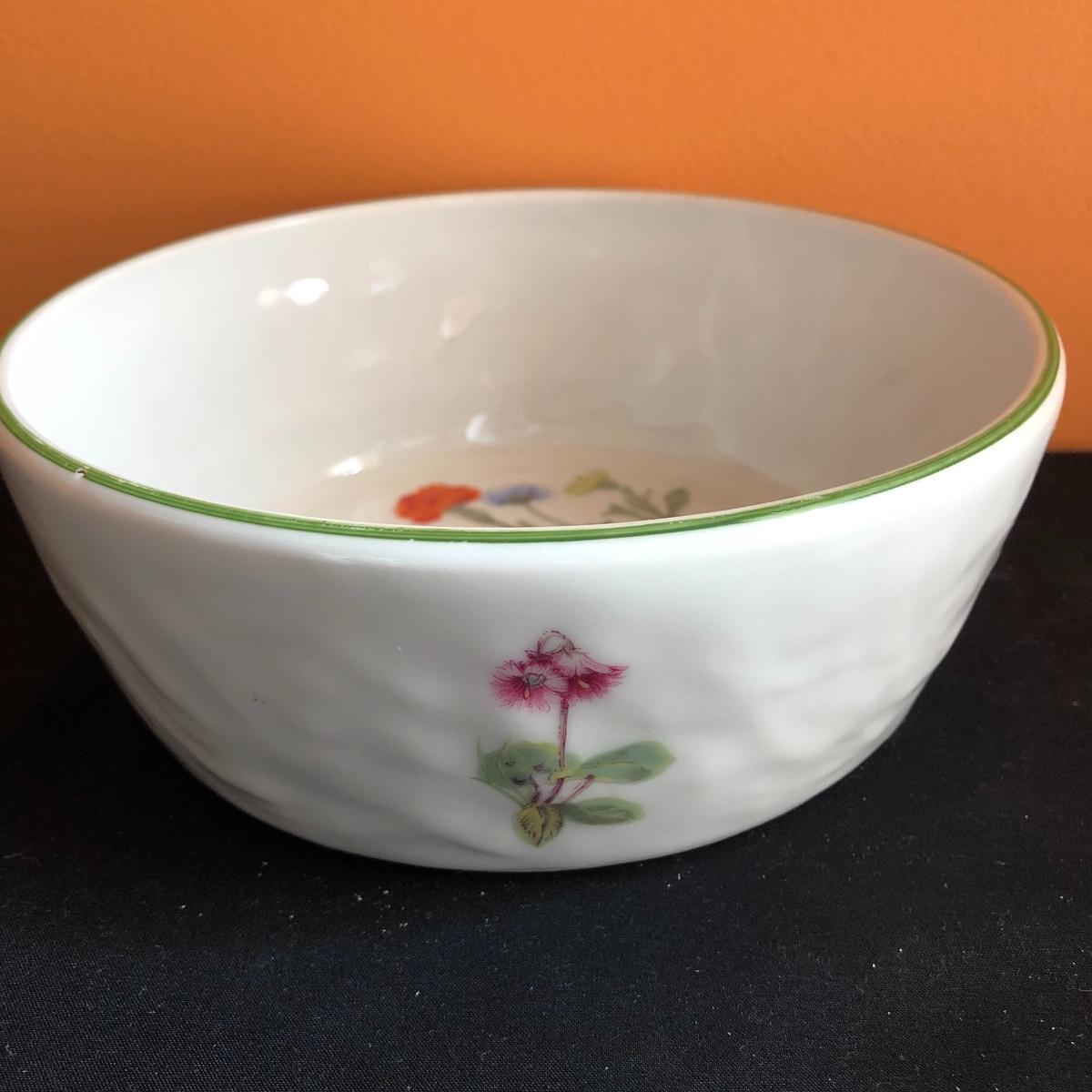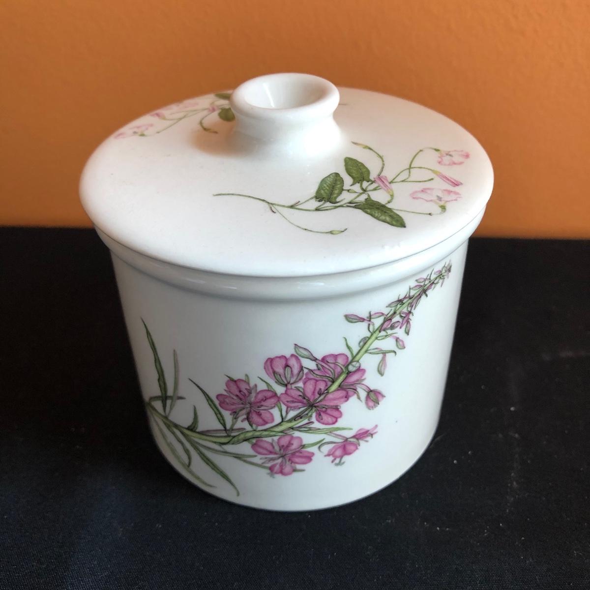 With this collection of floral Portmeirion and other ceramic-ware, you will be well prepared for any hosting occasion. The first items in this lot are a Royal Worcester Evesham cylindrical pot, a Corden Bleu ovular baking dish, two small Corden Bleu bowls, a Noritake Gala Cuisine teacup and saucer, and a Tullium mug. The Portmeirion items included are a small circular dish, matching cream and sugar dishes, six cheese knives, and a larger aerated knife. Remaining are a pepper shaker, a cake server, a small lidded jar, a floral mug by Roy Kirkham, a porcelain bowl made in France, a deep bowl, a shallow octagonal dish with fruit decor, and lastly, a shallow dish with decorative blackberries. Keep the charcuterie coming with this assortment of dishes from England, France, Japan, and China!